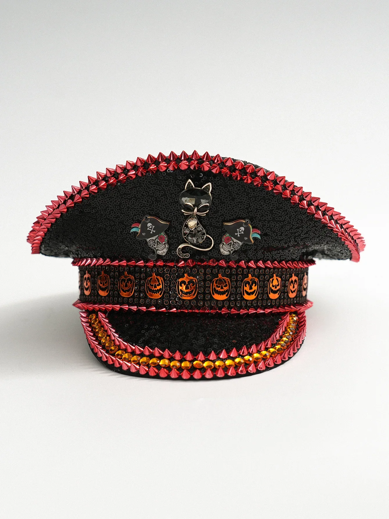 Halloween Men and Women's Party Hat Metal Foxes Skulls Smiling Pumpkin Three-dimensional Rivets Design Festival Carnival
