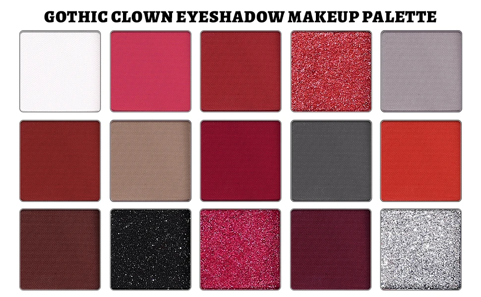 UCANBE Red Eyeshadow Makeup Palette, 15 Colors Burgunry Gray Silver Shimmer Matte Glitter for Halloween Christmas Vampire Clown