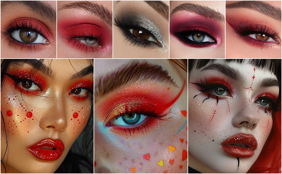 UCANBE Red Eyeshadow Makeup Palette, 15 Colors Burgunry Gray Silver Shimmer Matte Glitter Metallic Eye Shadow Pallet, Pigmented Make Up Kit for Halloween Parties Christmas Joker Vampire Clown