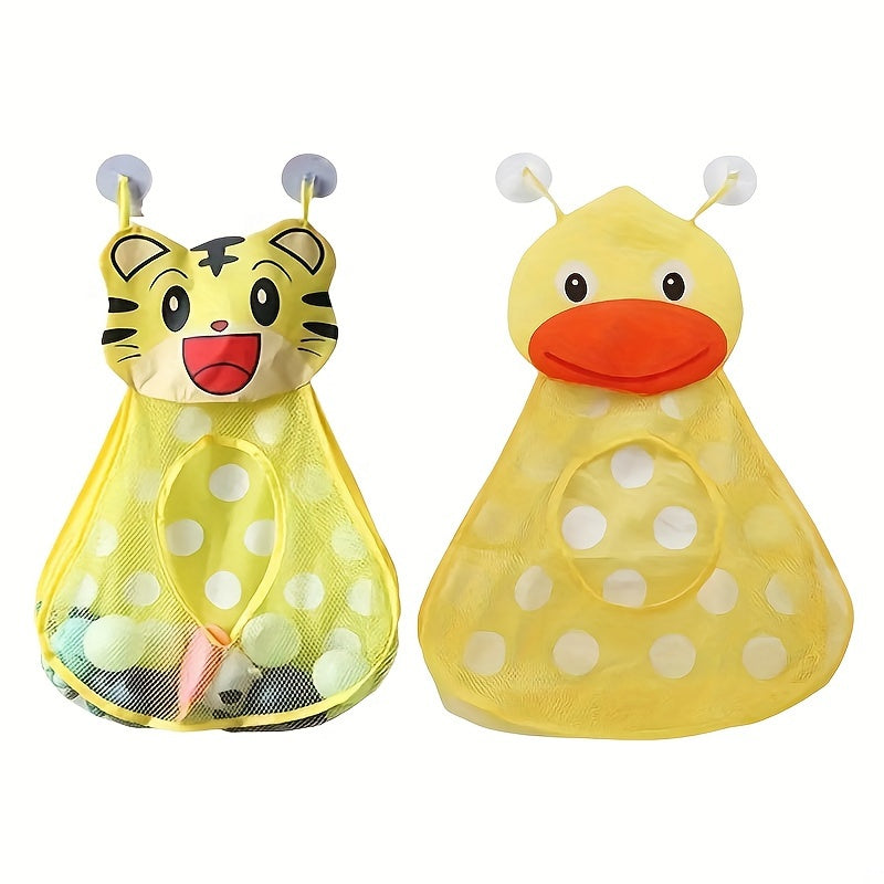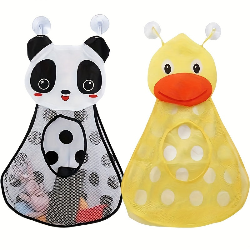 1Pc/2pcs Kawaii Animal Design Mesh Toys Storage Hanging Bag, Versatile Bathroom Wall Mounted Organizer