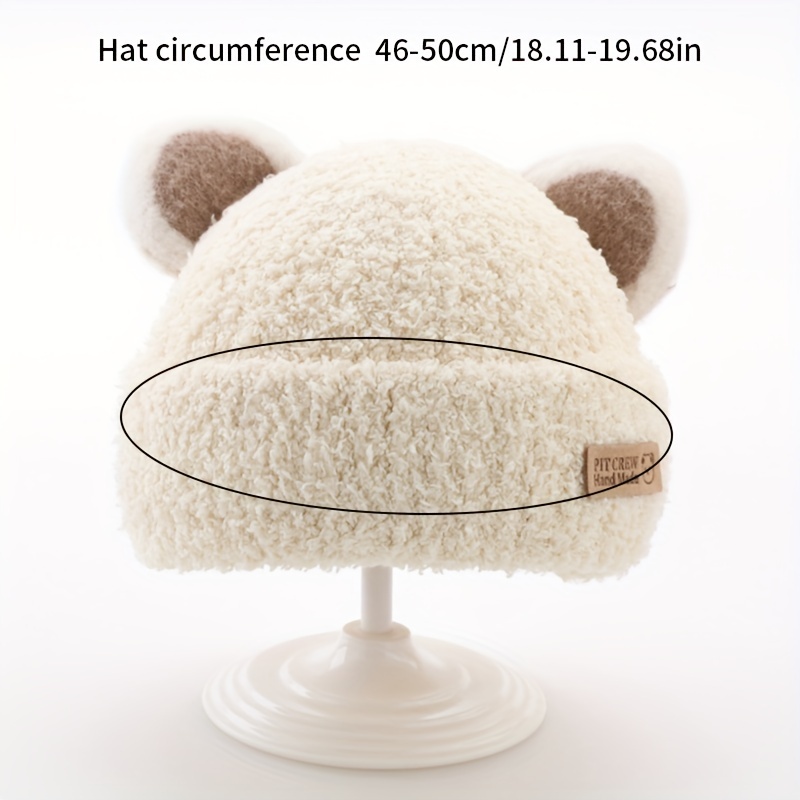 1pc Baby Plush Bear Ears Knit Cap, Children's Knitted Hats For Autumn And Winter