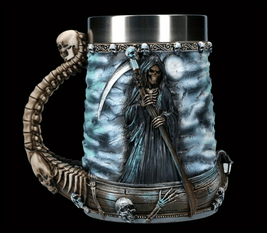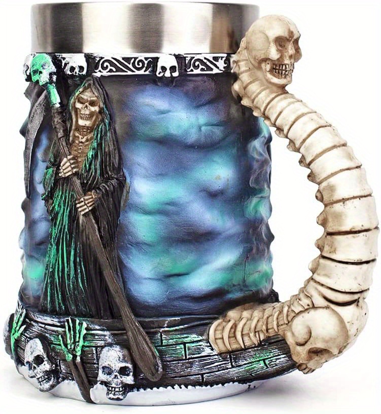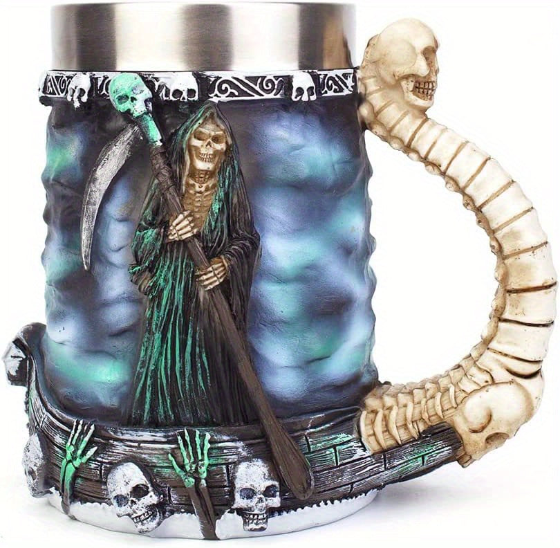1pc Death Coffee Mug - 20oz 304 Stainless Steel Resin Coffee Cup with Horror Grim Reaper Design, Perfect for Summer and Winter Drinks, Home Kitchen Item, Birthday and Halloween Gift