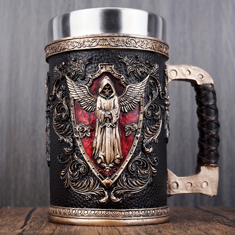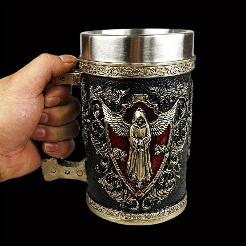 1pc Horror Death Coffee Mug - 600ml/20oz Stainless Steel Grim Reaper Skull Water Cup - Unique Summer Winter Drinkware for Home Kitchen, Spooky Birthday and Halloween Gifts
