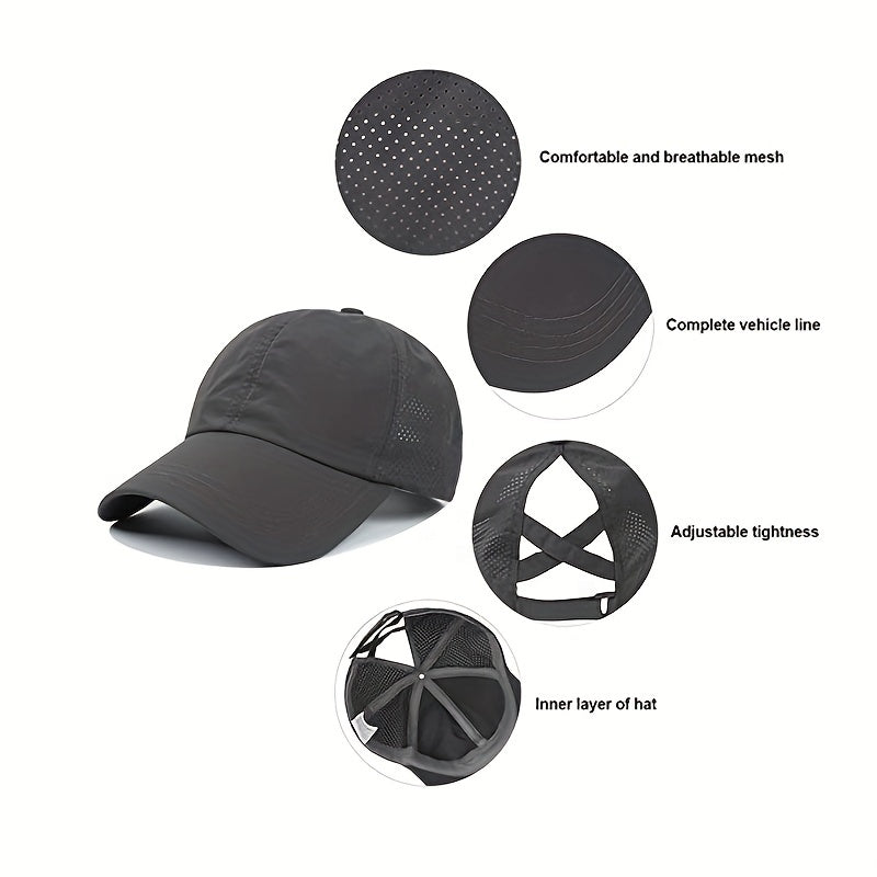 [1X Summer Cap] 1X Quick-Dry Summer Baseball Cap | Men's Ponytail Sun Protection Hat, Women's Sports Cap, Camping Hat