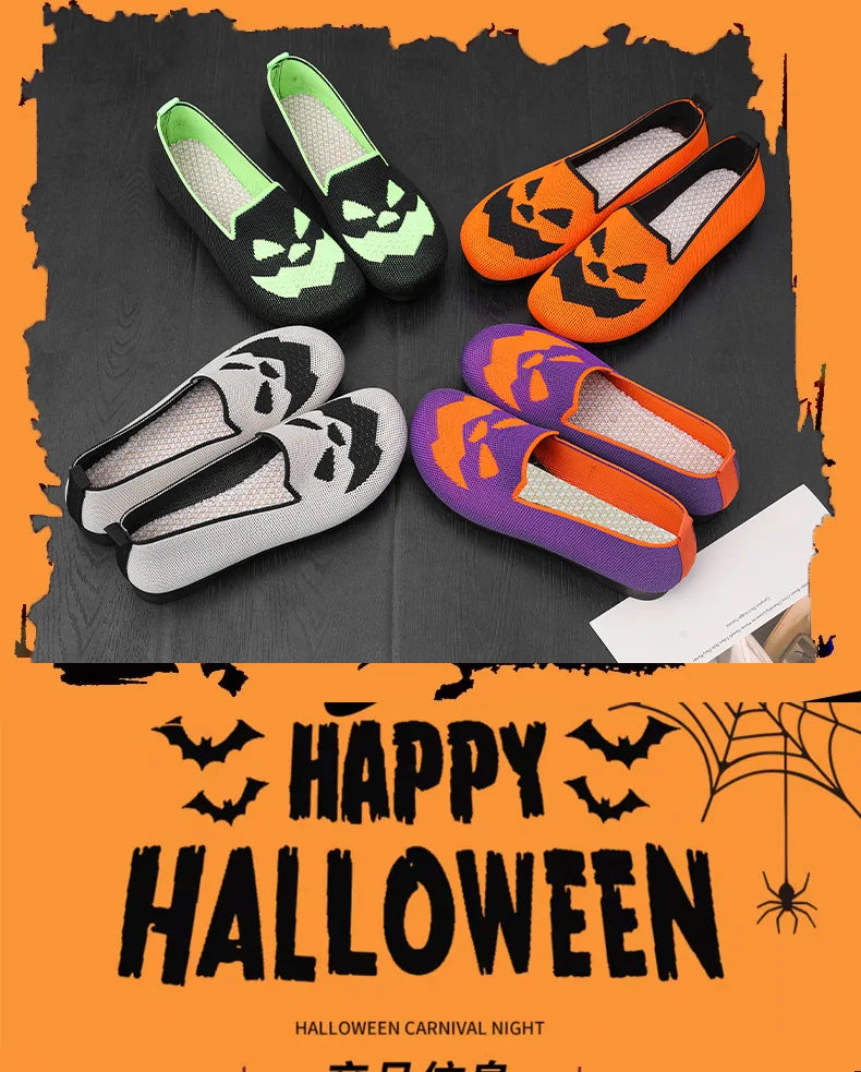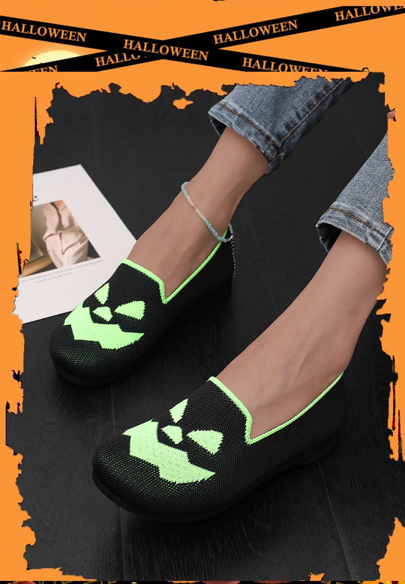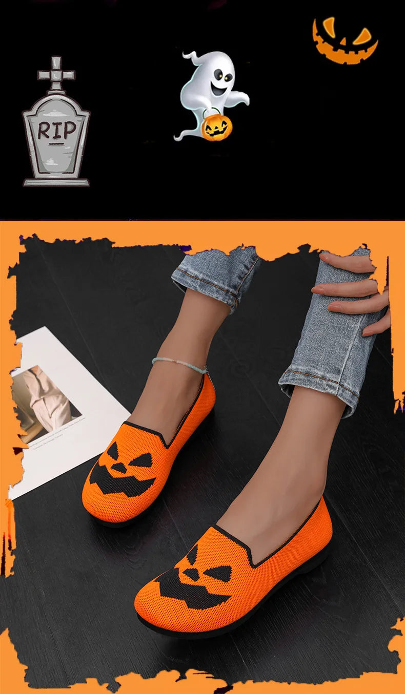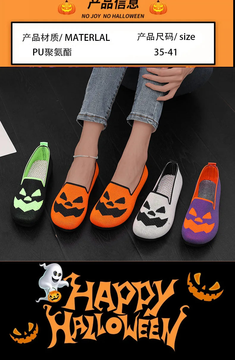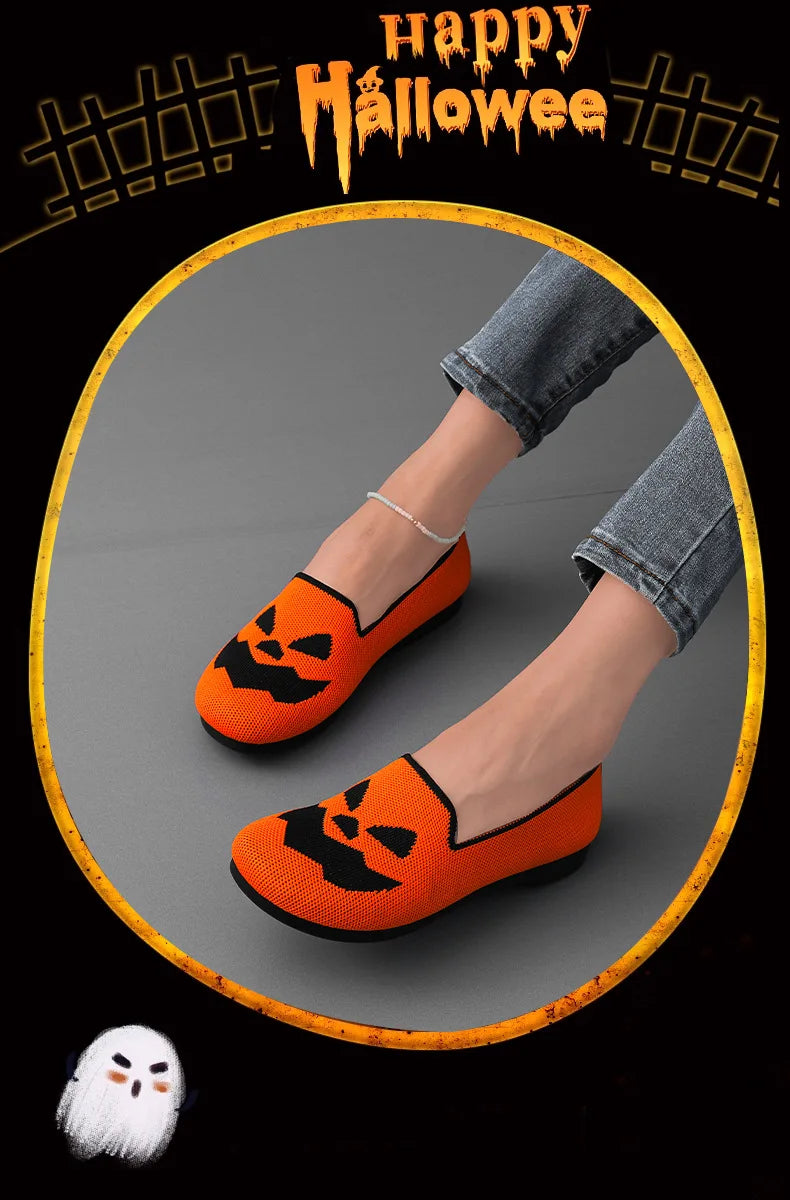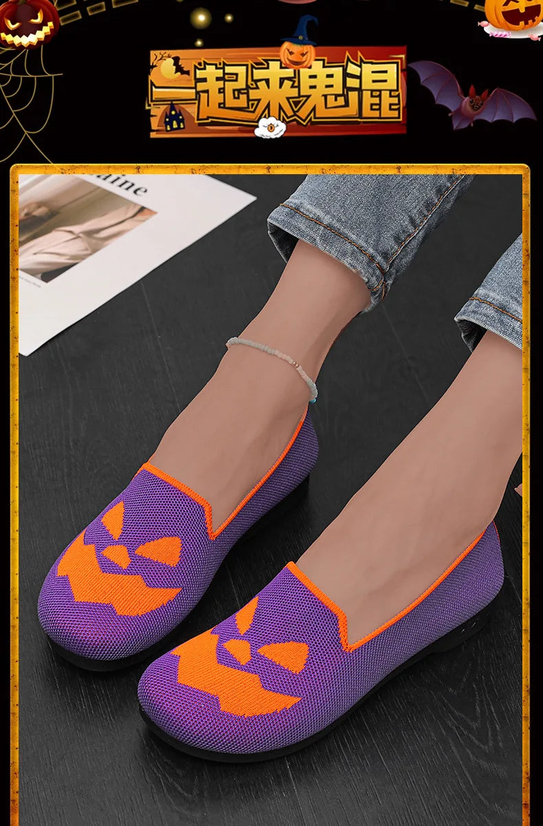 2024 New Women's Shoes Halloween Pumpkin Casual Flat Shoes Single Lightweight, Breathable, Fashionable Cloth Shoes