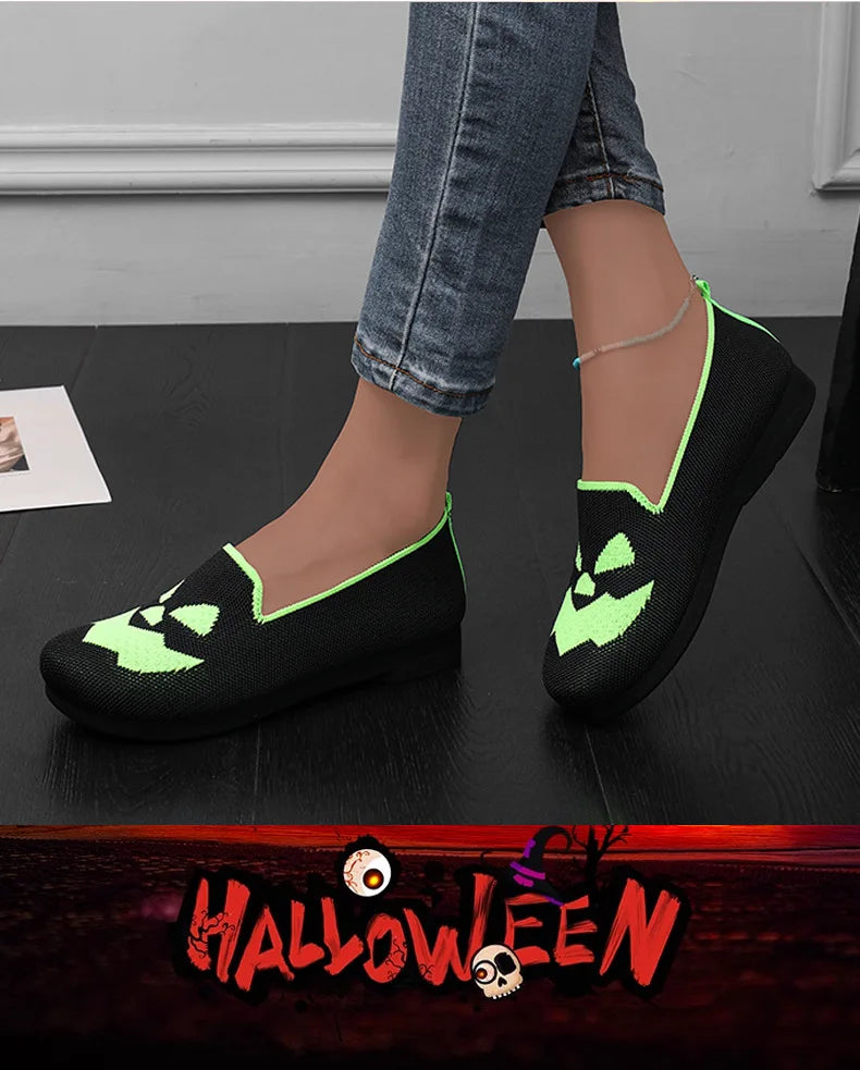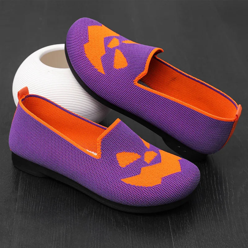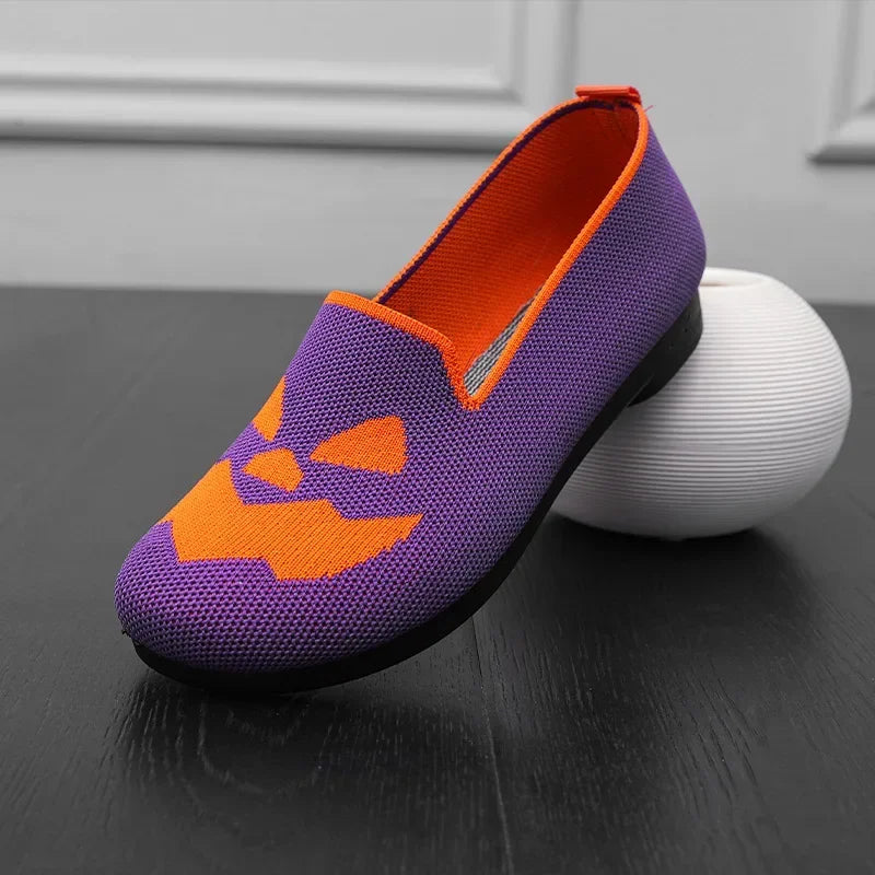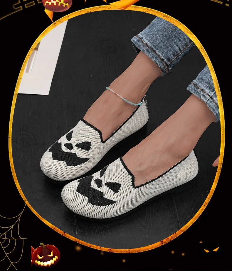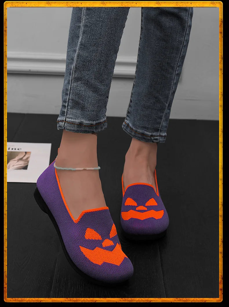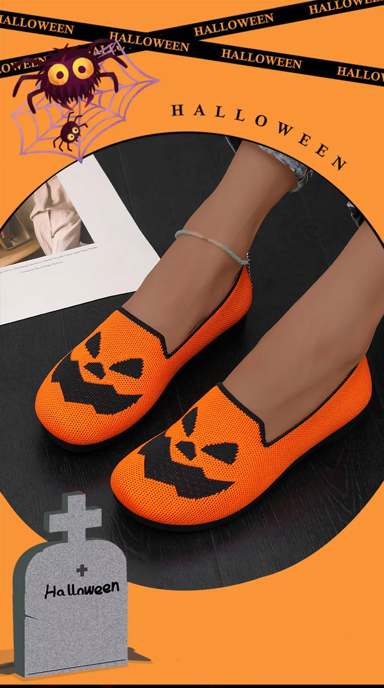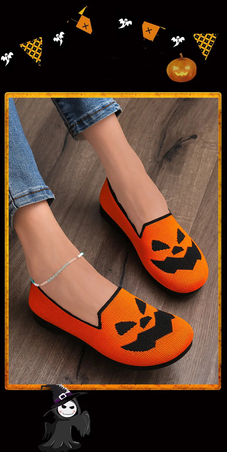 2024 New Women's Shoes Halloween Pumpkin Casual Flat Shoes Single Lightweight, Breathable, Fashionable Cloth Shoes