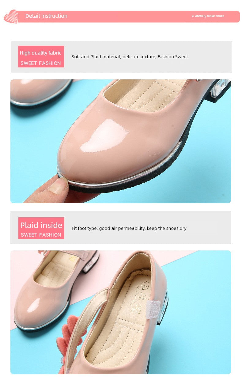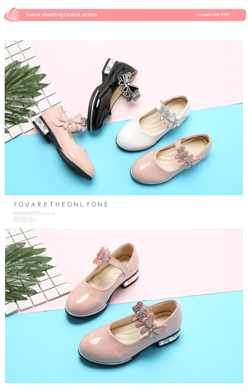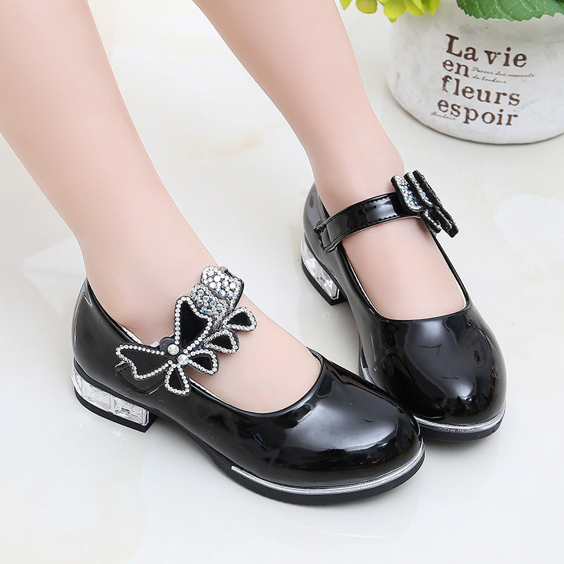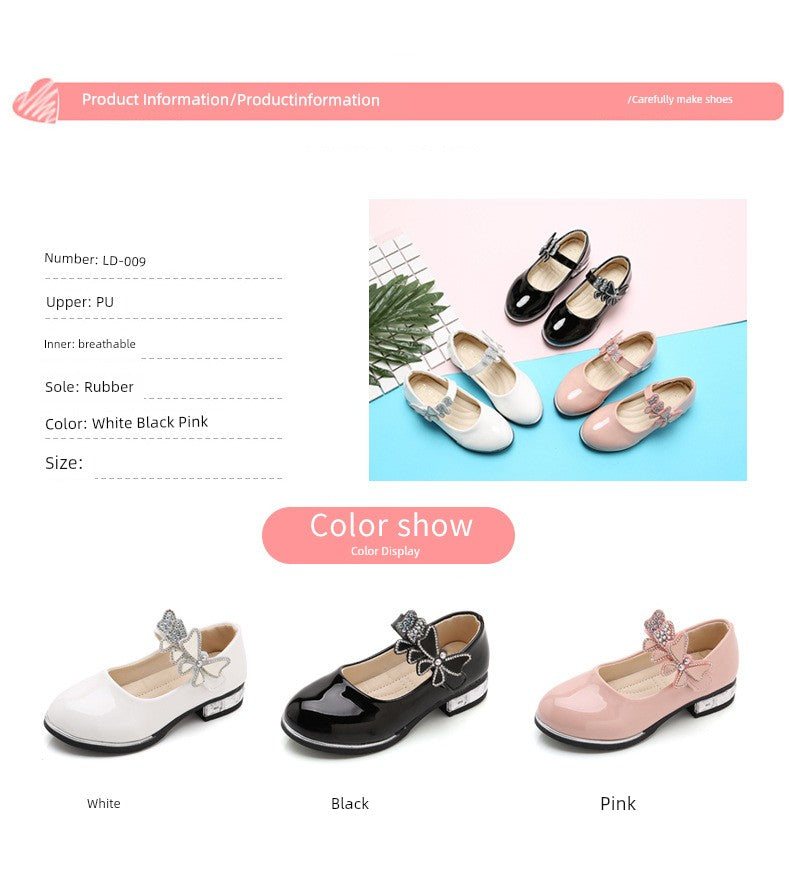 2025 Children's Shoes Girls Black Leather Shoes Performance Shoes Spring & Fall Soft Bottom Children's Single-Layer Shoes Student White Girls Princess Shoes