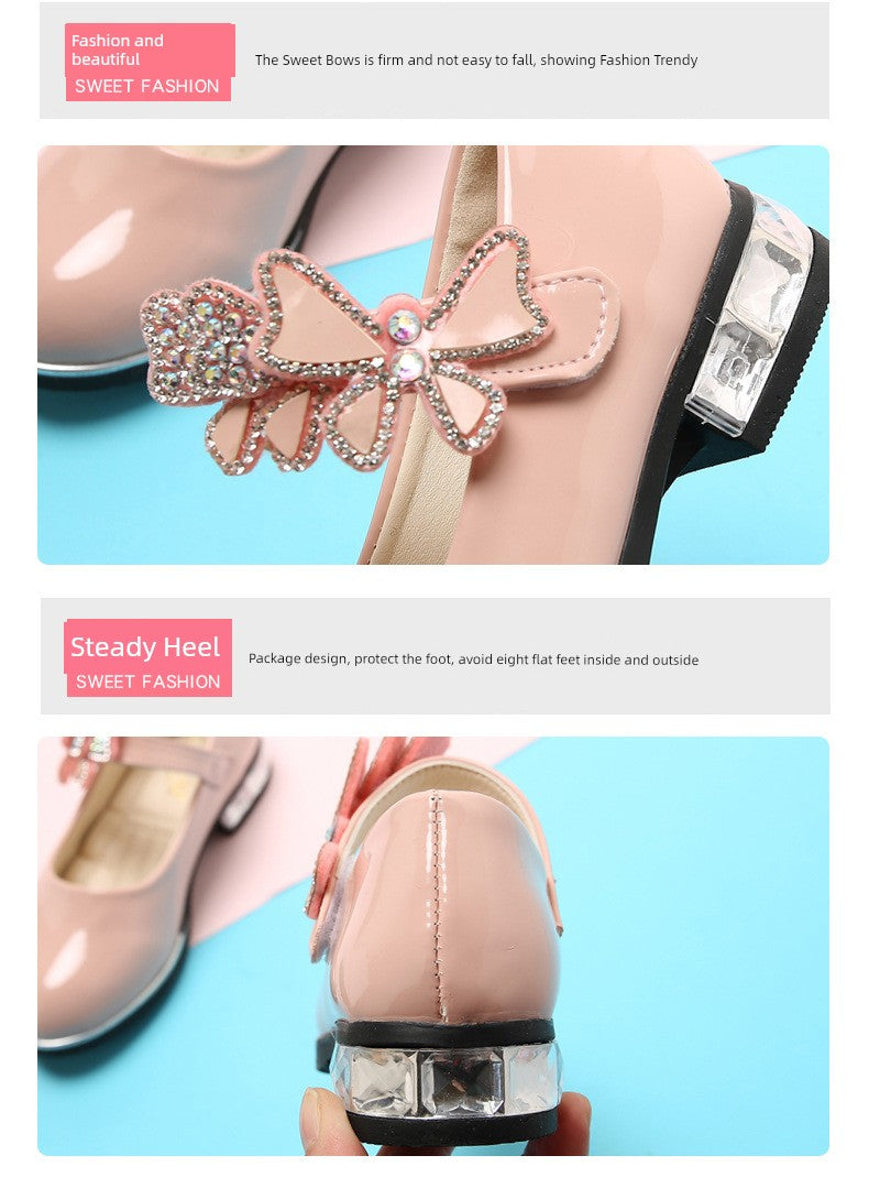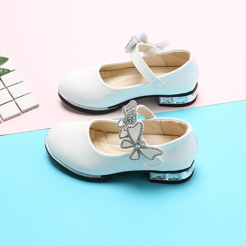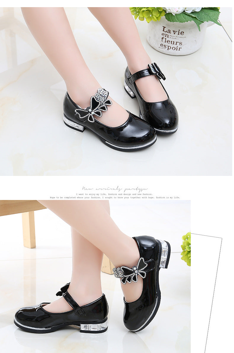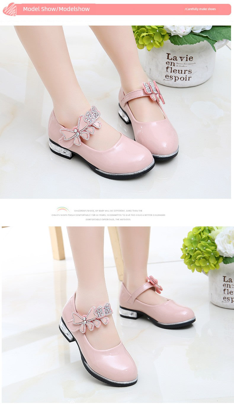 2025 Children's Shoes Girls Black Leather Shoes Performance Shoes Spring & Fall Soft Bottom Children's Single-Layer Shoes Student White Girls Princess Shoes