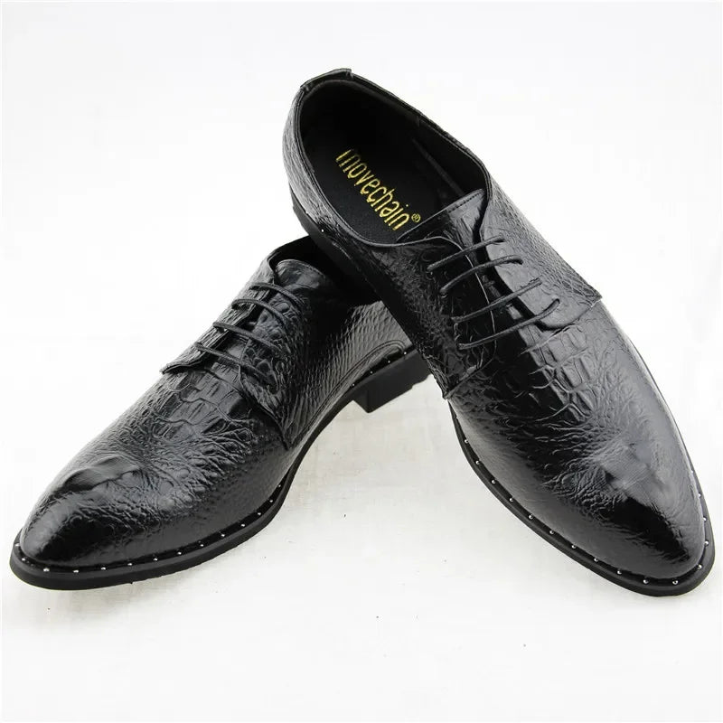 2025 Fashion Men's alligator Grain Leather Dress Shoes Man Casual Pointed Toe Oxfords Mens Lace-Up Business Office Oxford Shoe