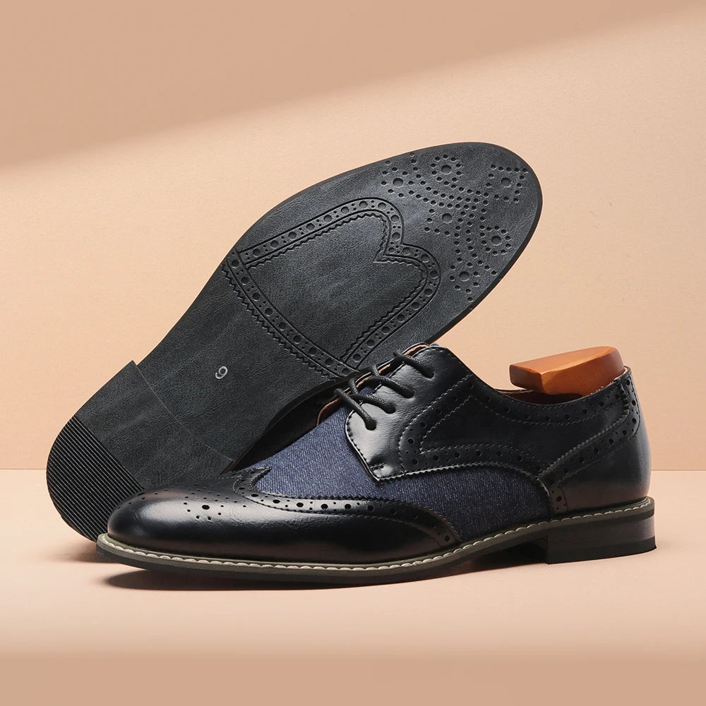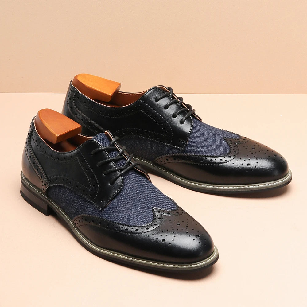 2025 New Brogue Dress Shoes Man Wedding Leather Social Shoe Male