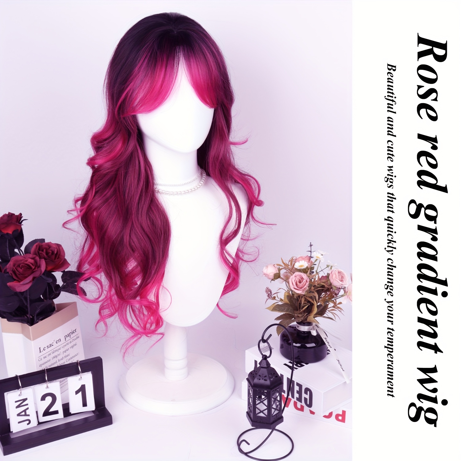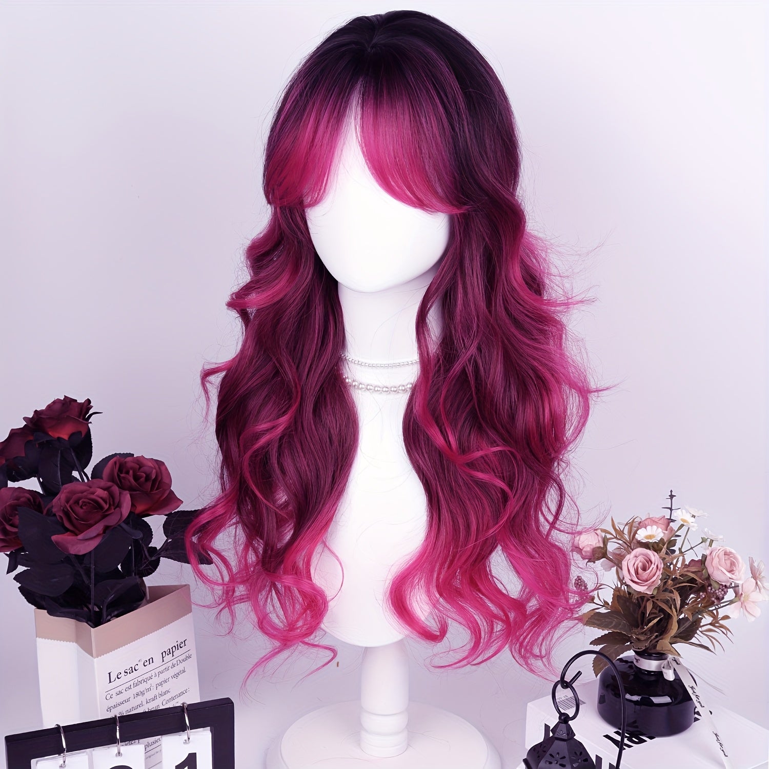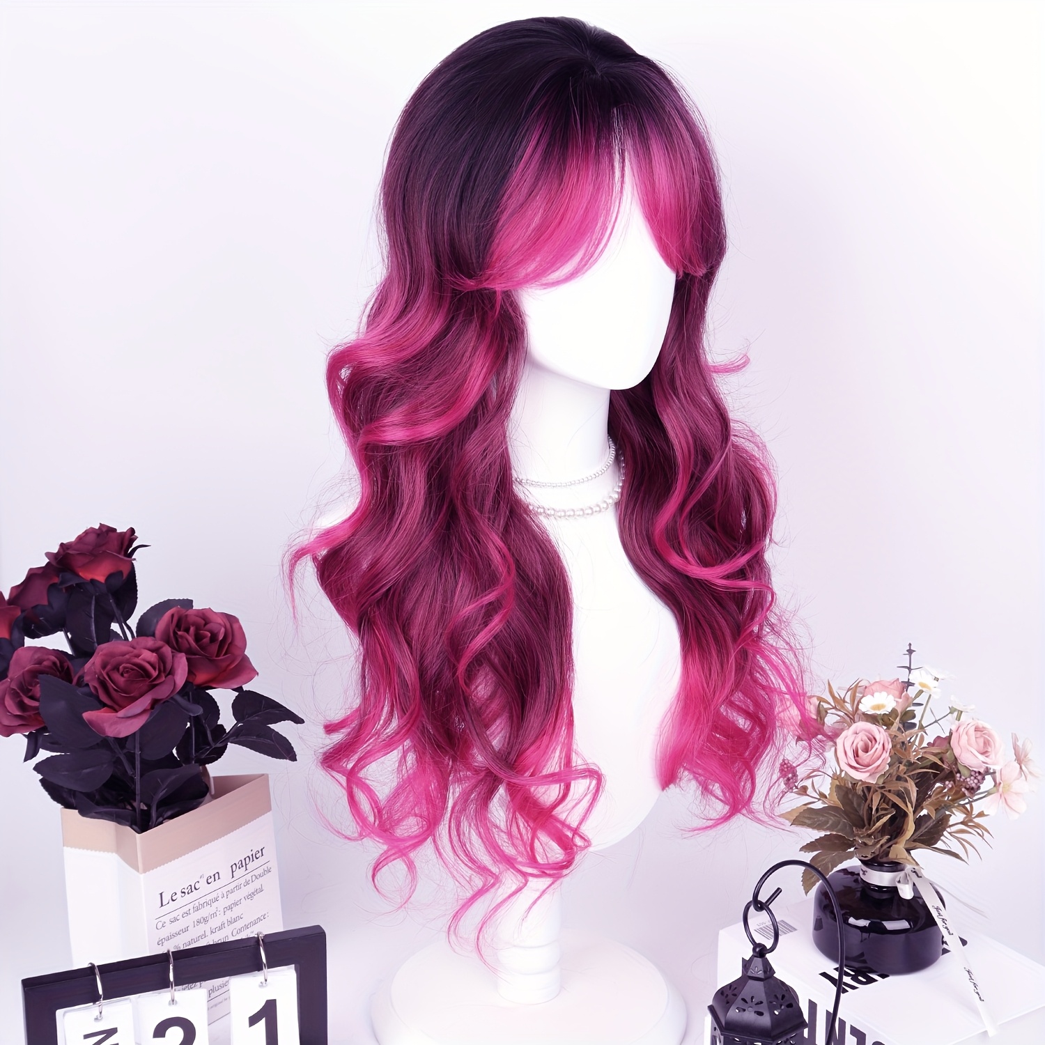 28" Heat Resistant Synthetic Hair Long Wavy Wig with Air Bangs - 150% Density Rose Net Cap for Women, Elegant Curly Wave Style for Parties, Christmas & Casual Attire, Everyday Wig | Chic Appearance | Synthetic Hair Wig, Wig A