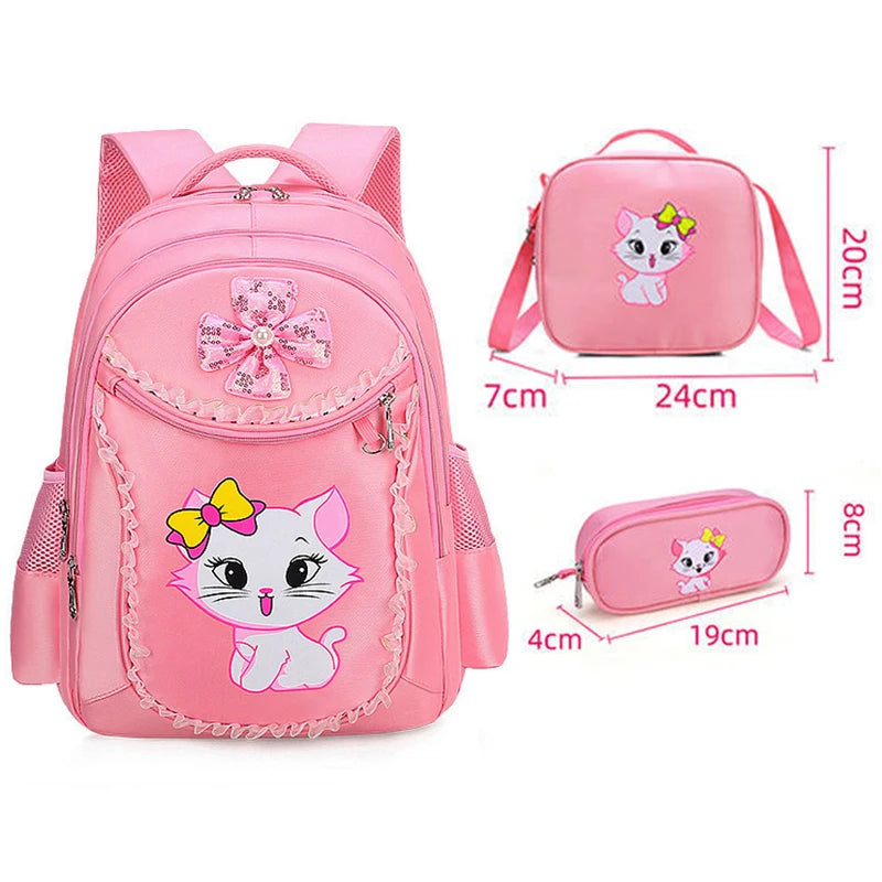 3PCS Kid Backpack For Girls Cartoon Cat Bowknot Children Lovely Bookbag with Lunch Box Schoolbag Gift Girl Backpack Waterproof