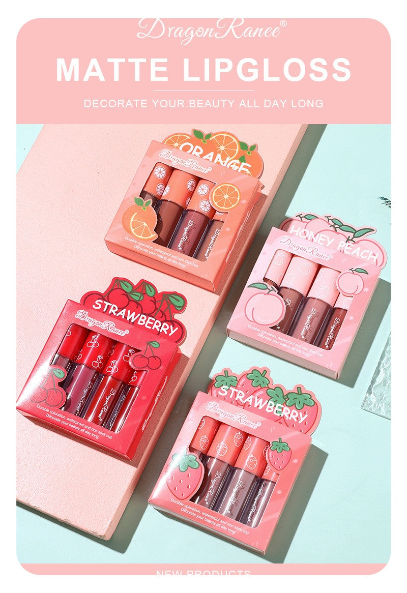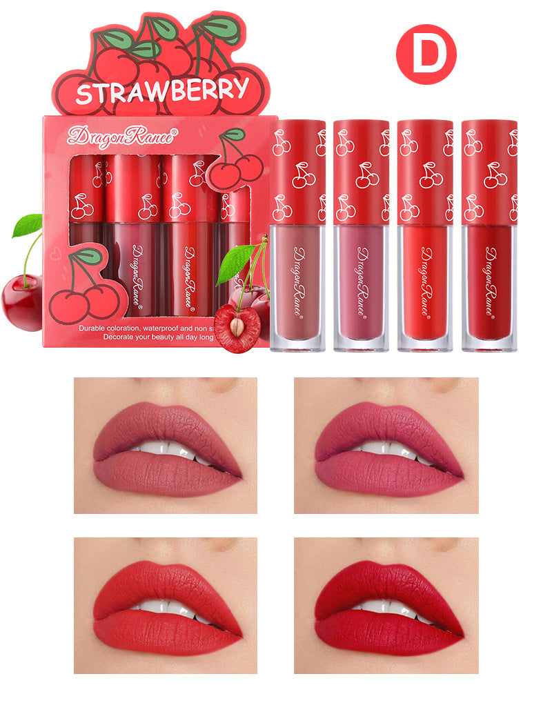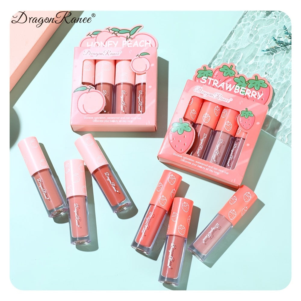 4 Pcs Strawberry Matte Lipstick Set - Lip Stains with Waterproof, Non-Stick, Velvety Finish and Long-Lasting Lip Glaze - Perfect Valentine's Day Gifts for Women with Lip Care Benefits