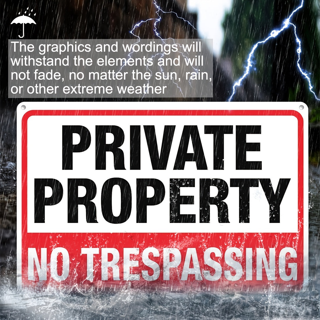 4pcs A Set Private Property No Trespassing Sign Metal 10"x14" Rust Free Aluminum, Indoor & Outdoor Use