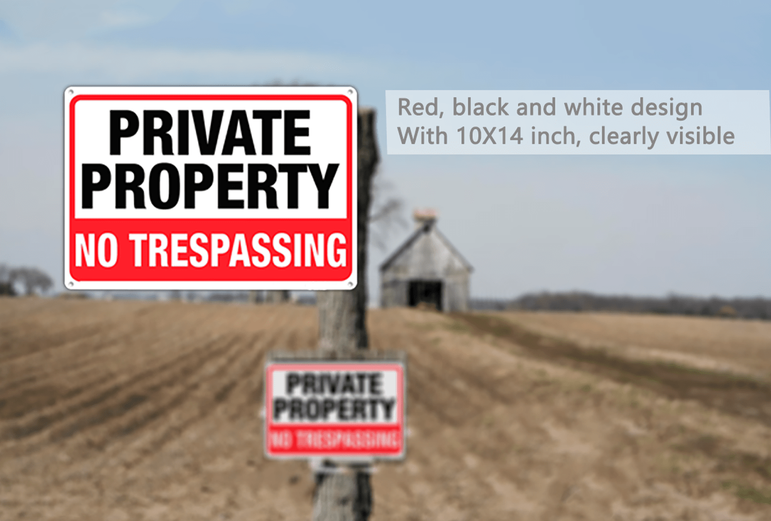 Private Property No Trespassing Signs uses industry-leading uv printing and dirt-and moisture-repelling layers,durable metal and looks and feels like it will stand the test of time in outdoor elements,long lasting will not fade