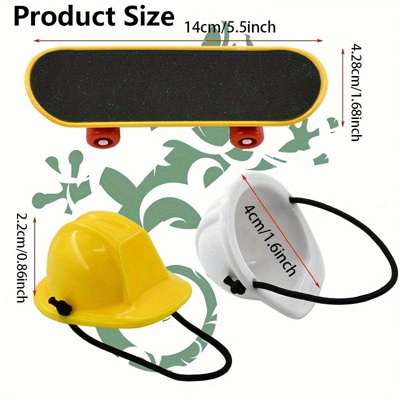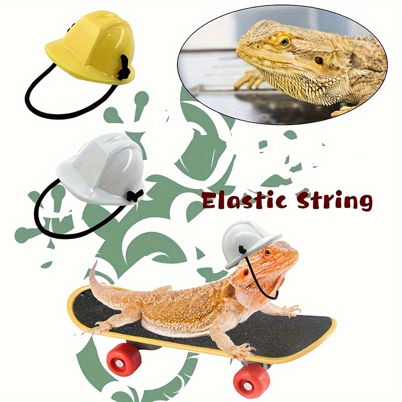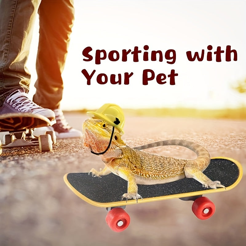 4pcs/Set Reptile Training Toys, 2pcs Plastic Mini Skateboard Bird Toys With 2pcs Hats, Bearded Dragon Lizard Construction Helmet Hats And Mini Scooter, Pet Training Supplies For Self-Amusement