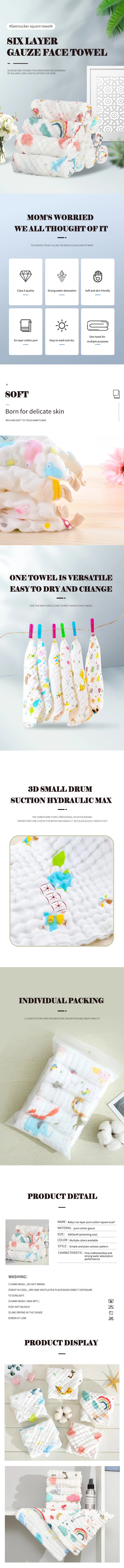 Baby washcloths can give baby intimate care, cotton gauze material is very skin-friendly and delicate.
