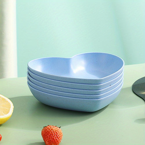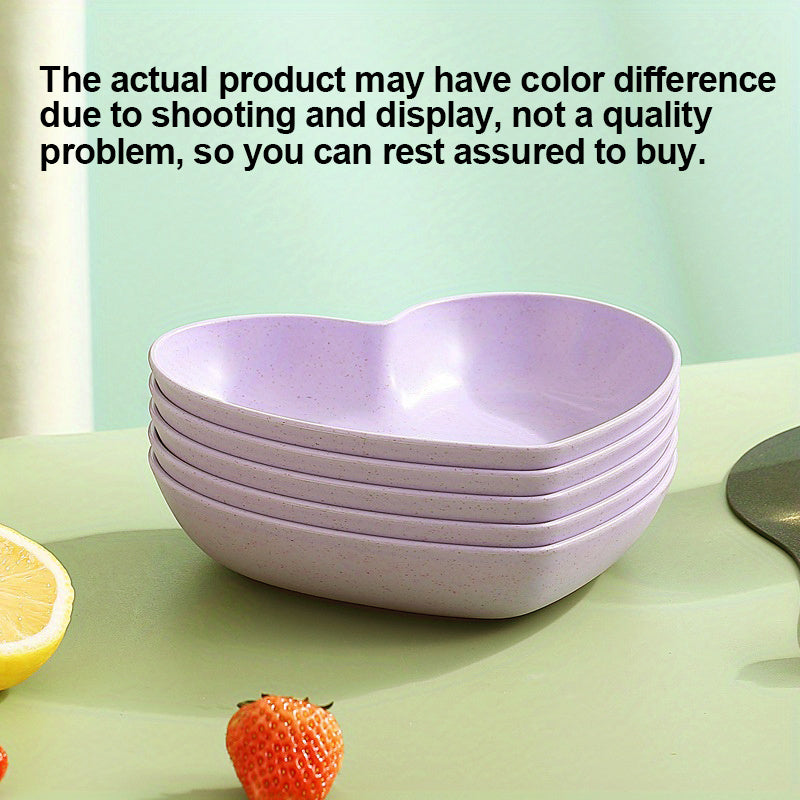 [5pcs Durable Heart-Shaped Plate Set] 5pcs Heart-Shaped Snack & Fruit Plate Set - Durable Plastic, Perfect for Desserts, Cakes, and Pickles - Ideal Kitchen Accessory