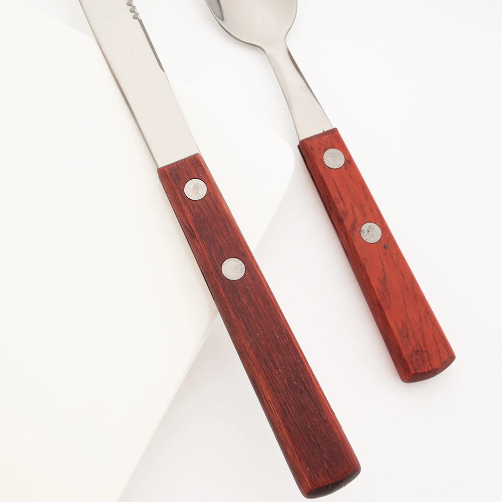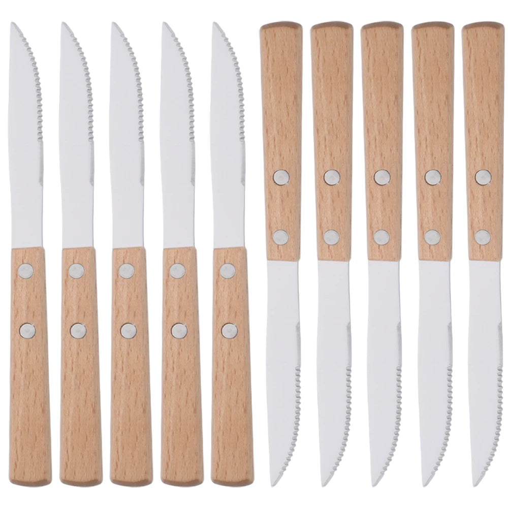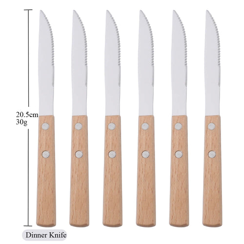 6/10Pcs flatware Set Natural Wood Handle Steak Knives Cutlery Stainless Steel Dinner Knife Dinnerware Kitchen Silverware Set
