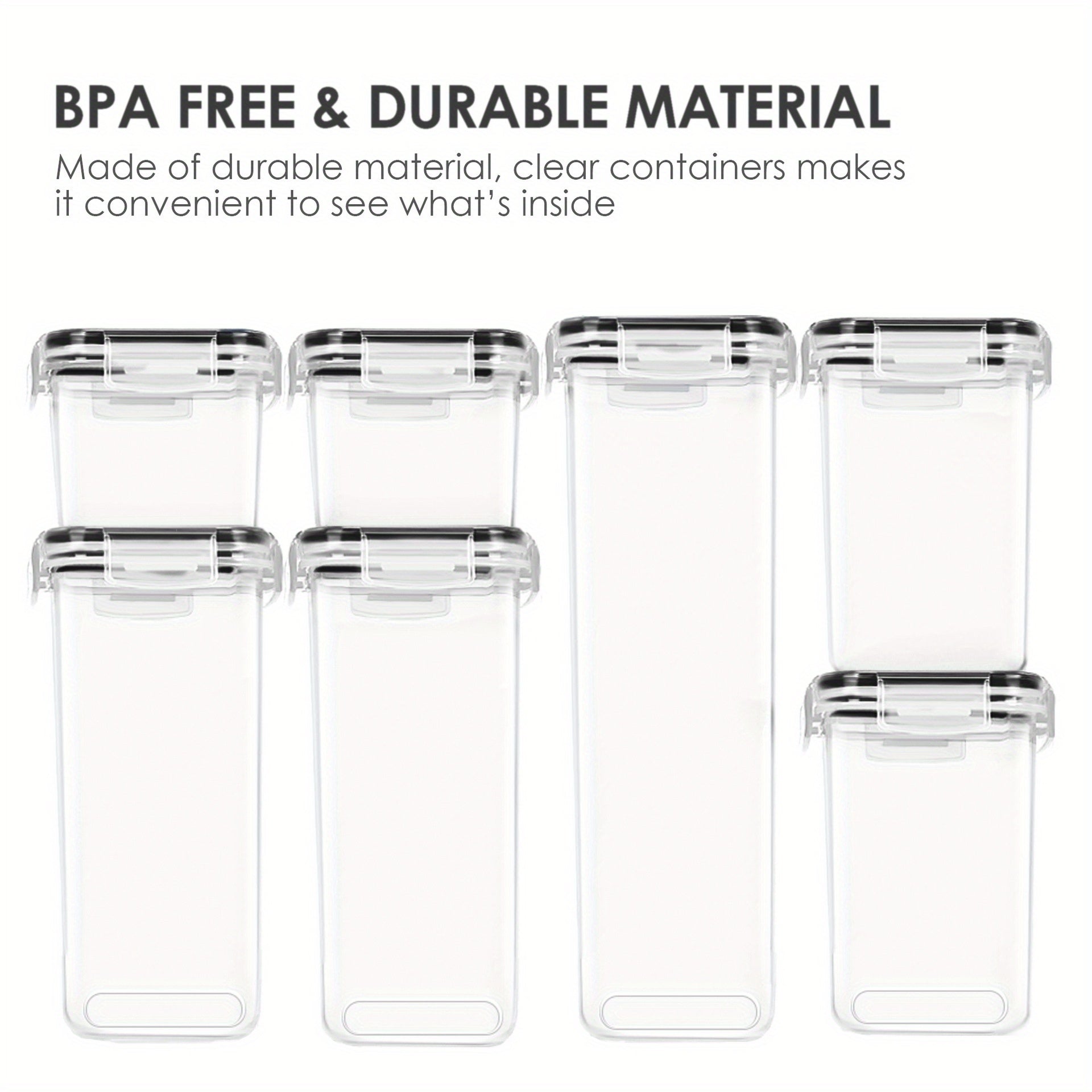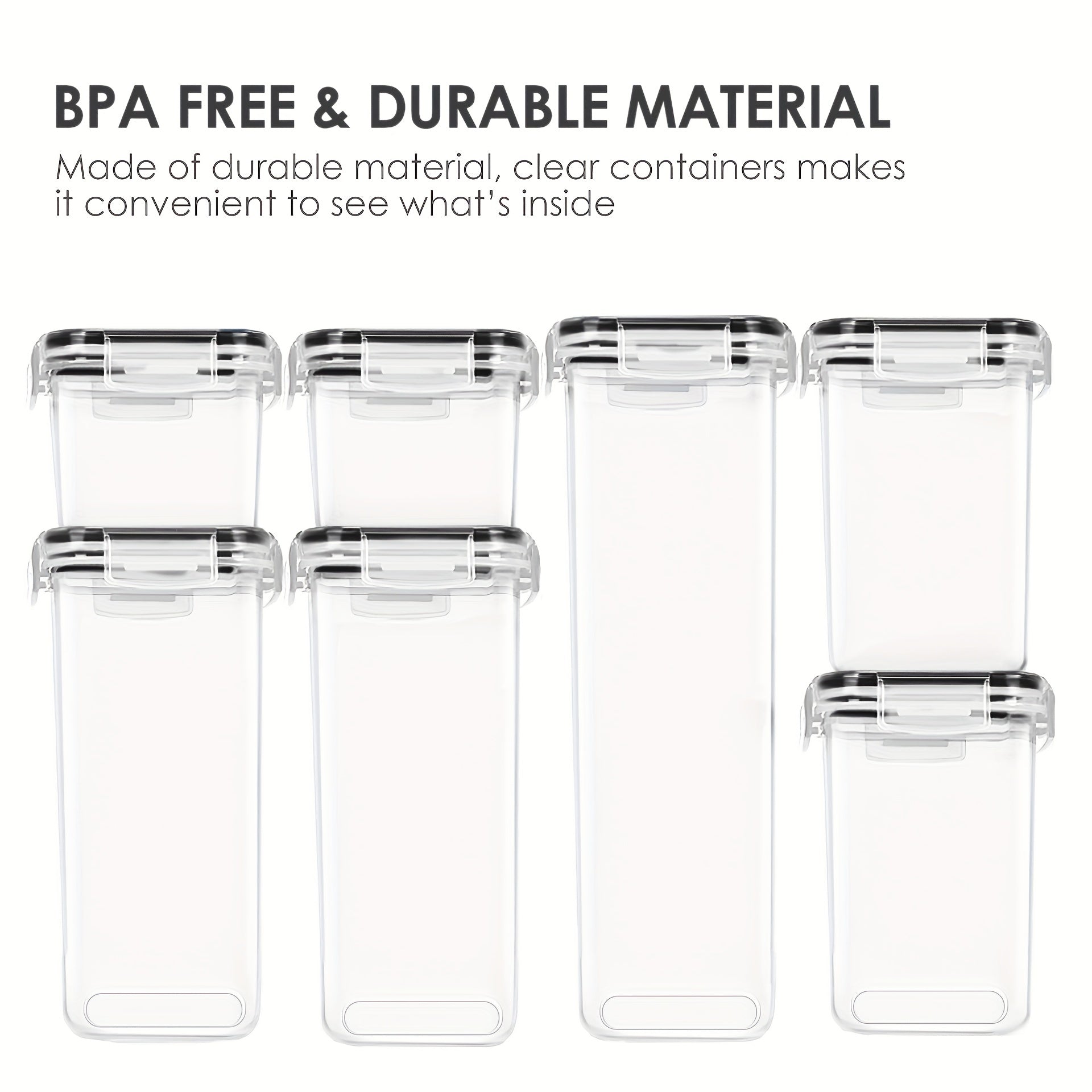 BPA Free and Food Grade Material----Our pantry storage containers are made of durable plastic, BPA free, which have a longer life than many other brands plastic containers. Clear containers make it convenient to see what’s inside, you can easily get what you want without opening every container.