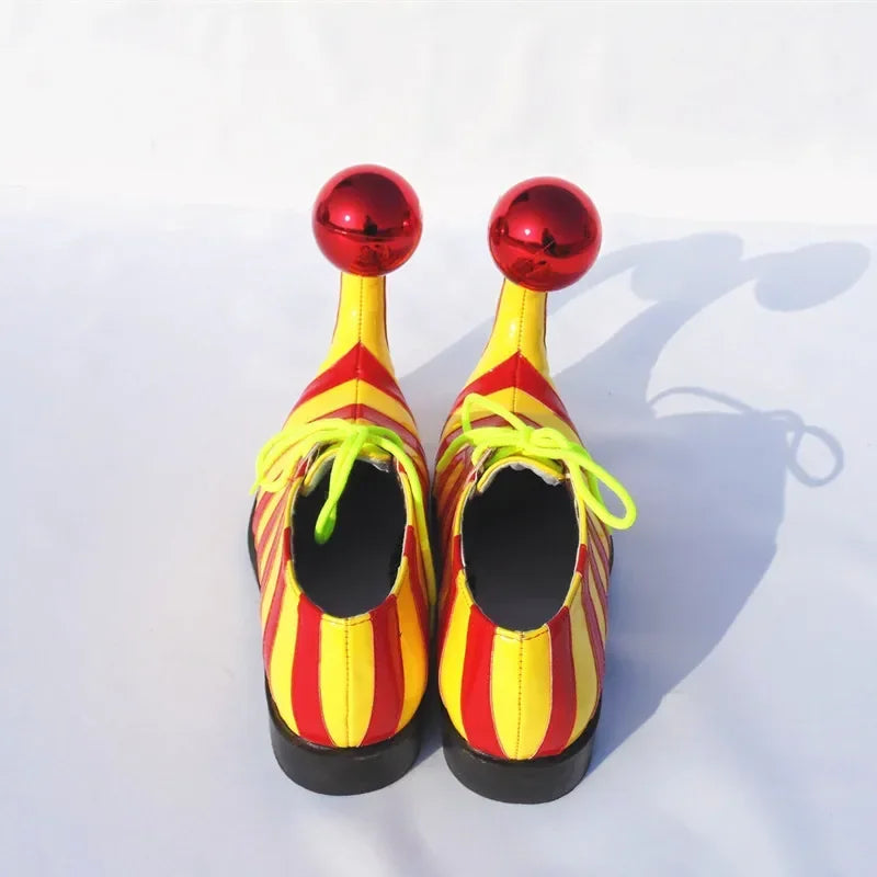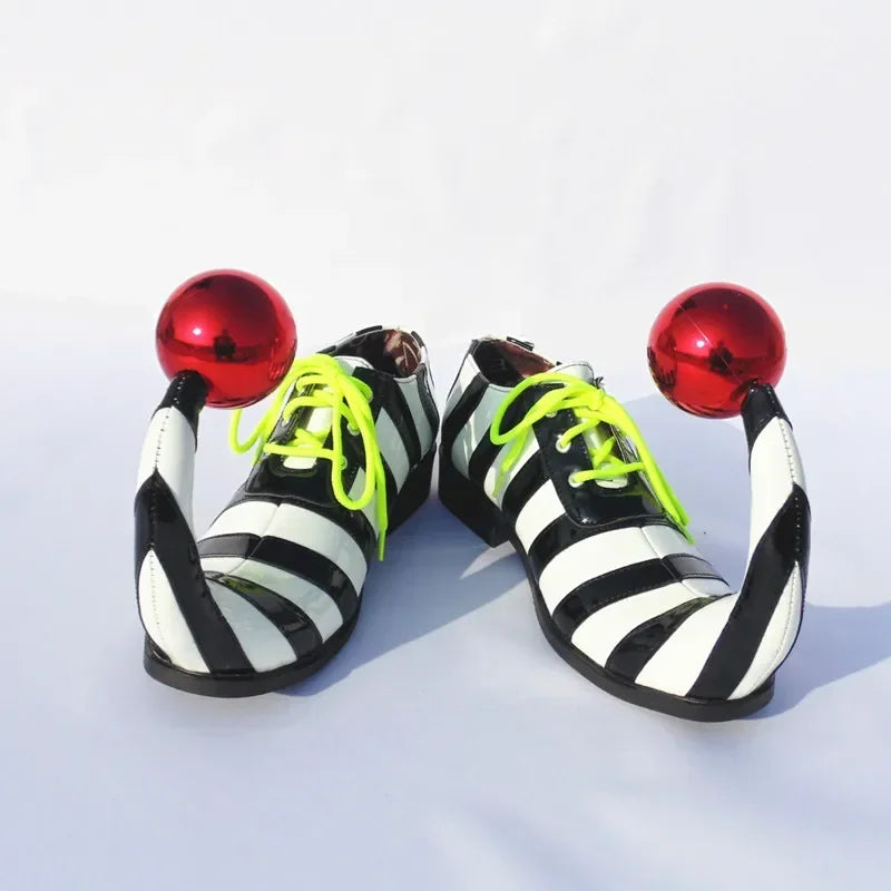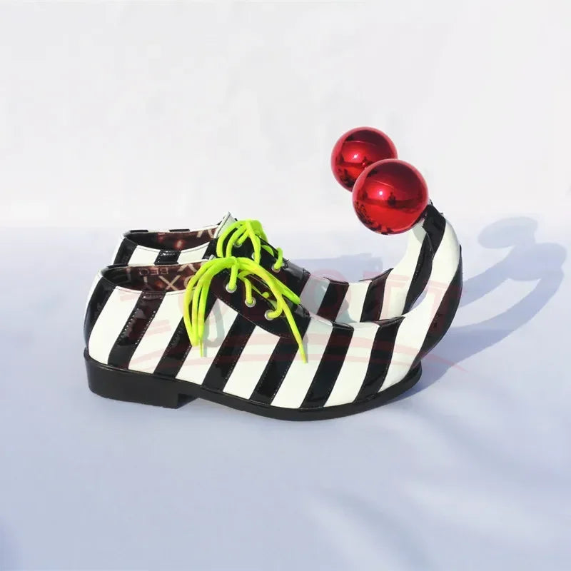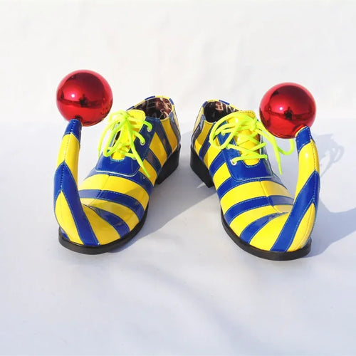 Adults Halloween Clown Cosplay Shoes Funny Circus Club Clown Performance Stripe Clown Shoes With Red Ball Carnival Cosplay Shoes