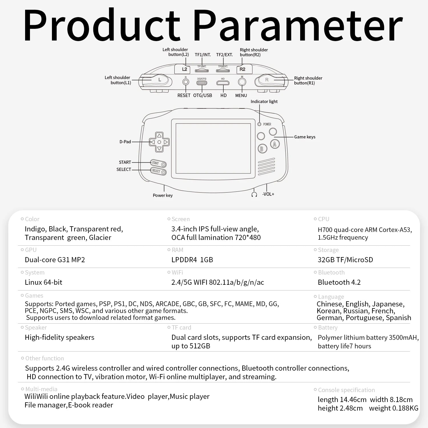Supports Ported games etc more than 10 game simulators format. Supports users to download related format games.With its 64G,128G,256G storage capacity, you can enjoy a vast library of games, and there's an option to insert an additional TF card to expand your game collection even further, maximum 512GB.