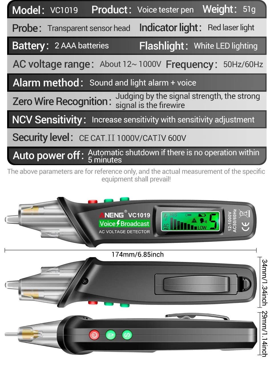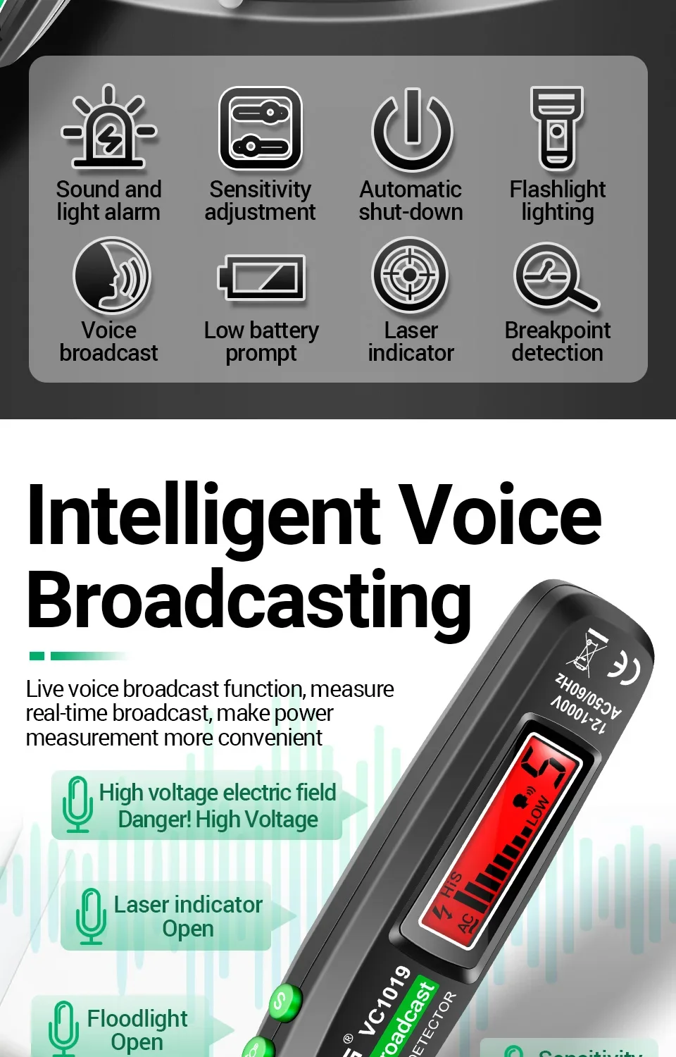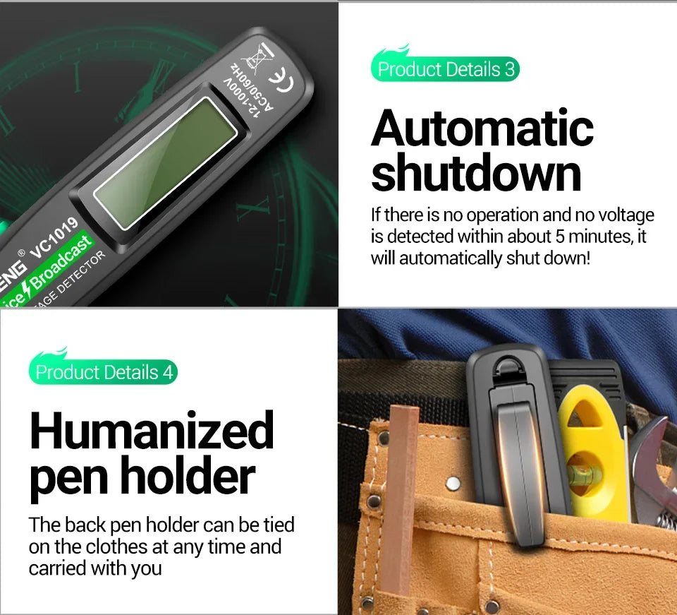 ANENG VC1019 Non-Contact Voltage Tester Pen Voice Broadcast Red Laser Detect 12-1000V Volt Current Pen Electric Test Meter Tools