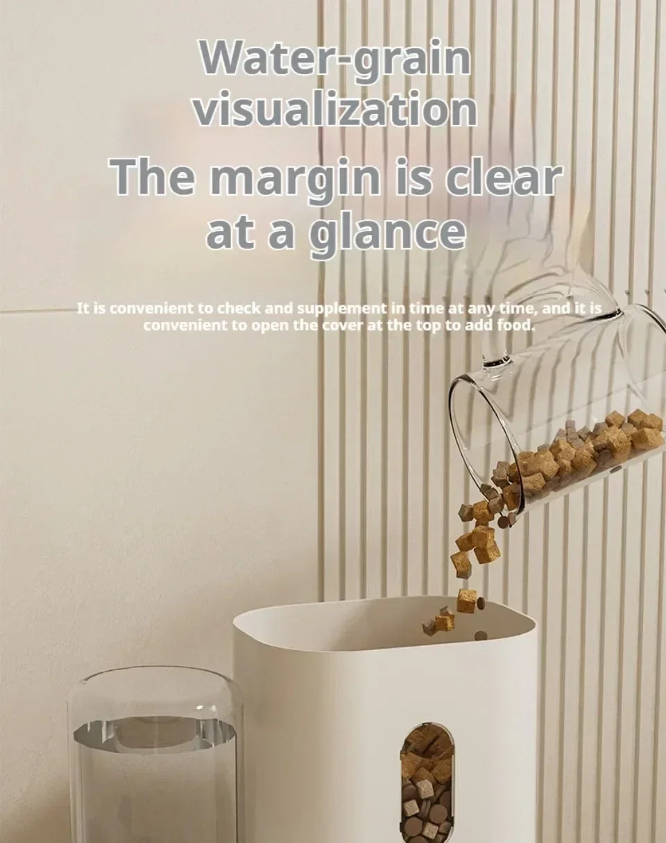 Automatic Pet Feeder and Water Dispenser 2in1 Raised Food Bowl with Water Fountain for Cat Dog Large Capacity Pet Accessories