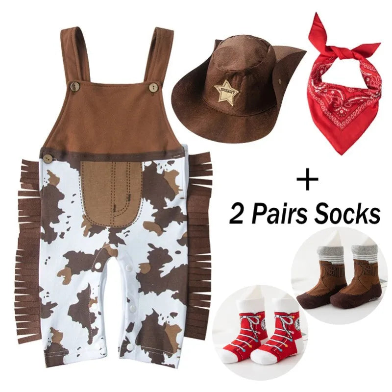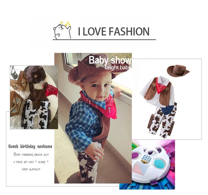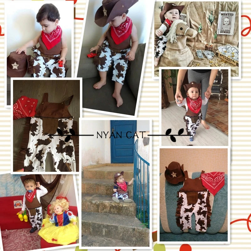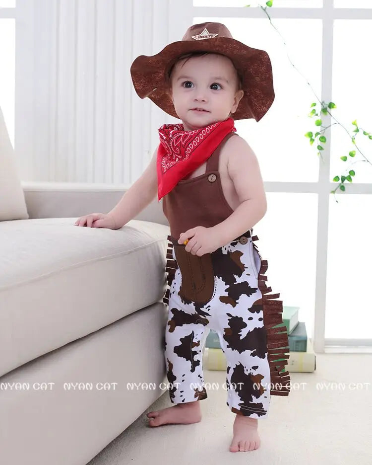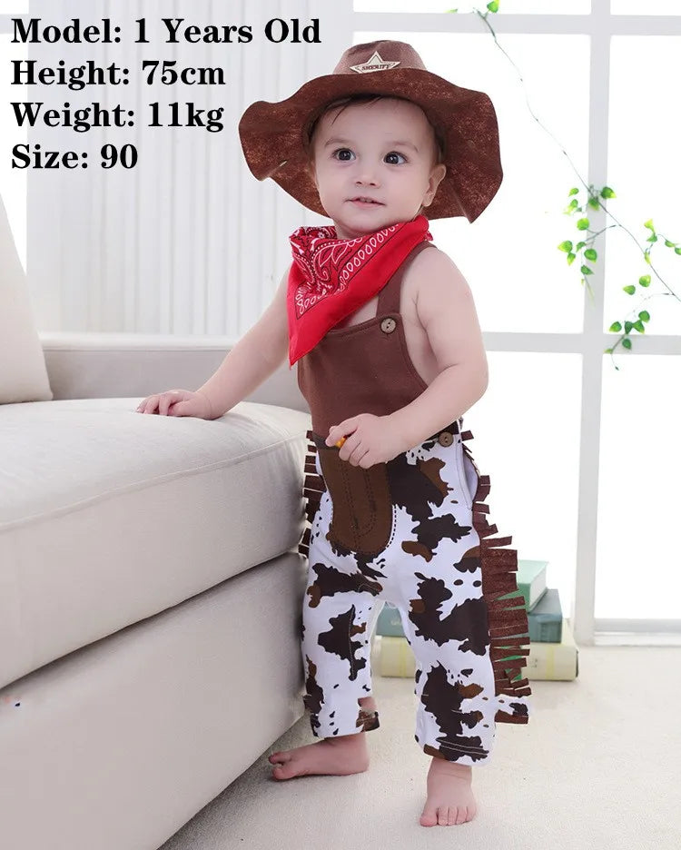 Baby Boy Clothes cowboy Costume Infant Toddler Cowboy Set 3Pcs Hat Scarf Romper Halloween Event Birthday Holiday Cosplay Outfits
