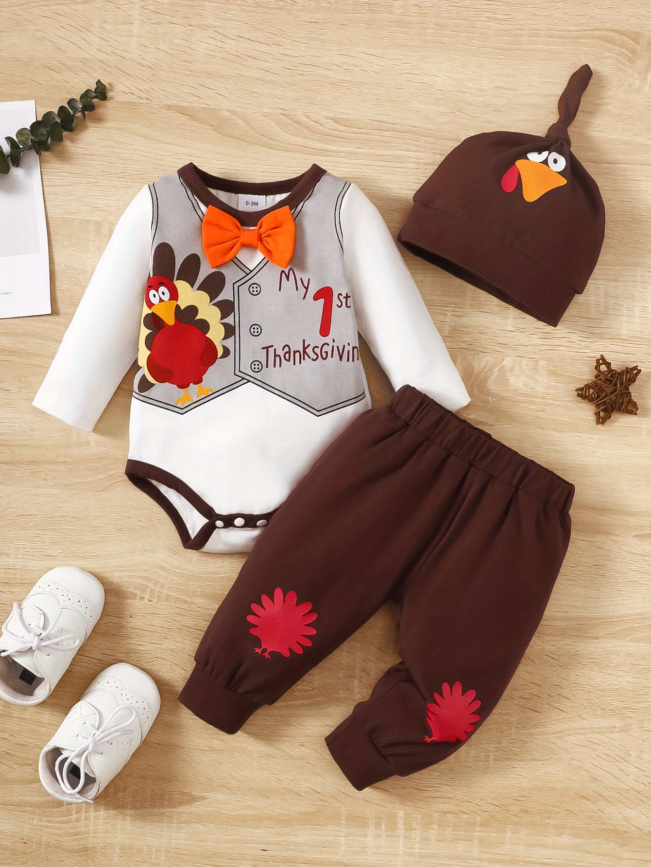 Baby Hot Thanksgiving Turkey Cute Suit, Long-sleeved Romper & Hat &Pants Set 3 Pcs