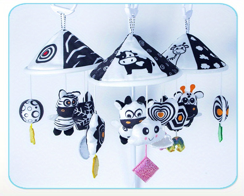 Visual Stimulation On the Go This black and white hanging baby toy features soft animal designs, gentle wind chimes, and high-contrast colors to support early visual development. Perfect for cribs, strollers, car seats, and baby carriers. πΆπ€π€