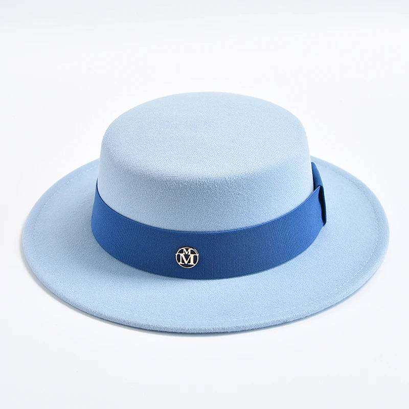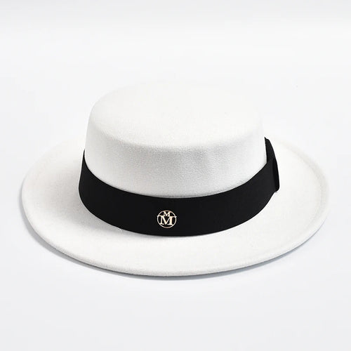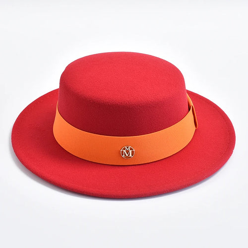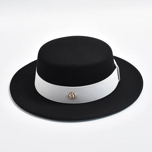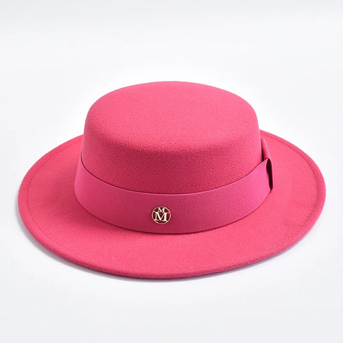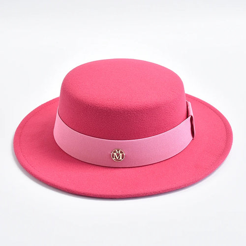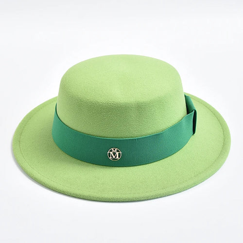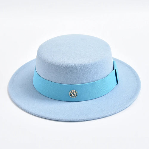 British Style Fedora Hats for Women Fashion Autumn Winter Flat Top Bow Elastic Ribbon Felt Hats Wedding Dress Jazz Cap