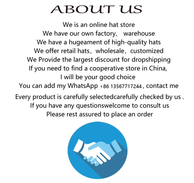 1.All the hats in the shop are in stock. Orders are shipped in the order of payment, so you can buy with confidence.