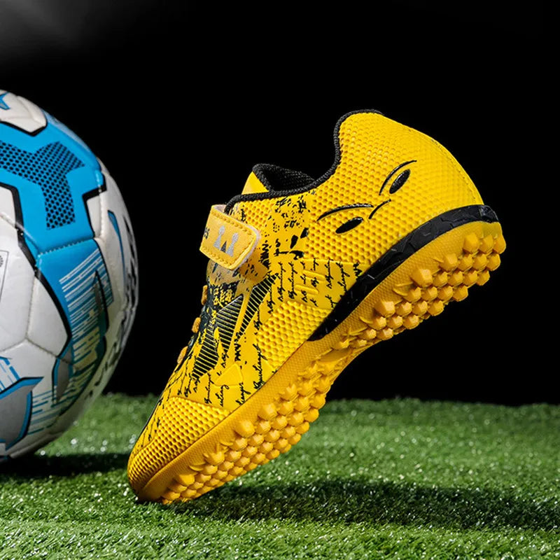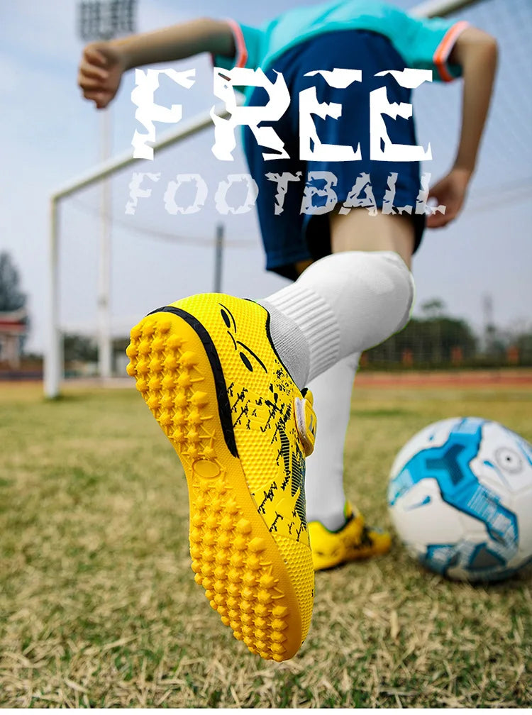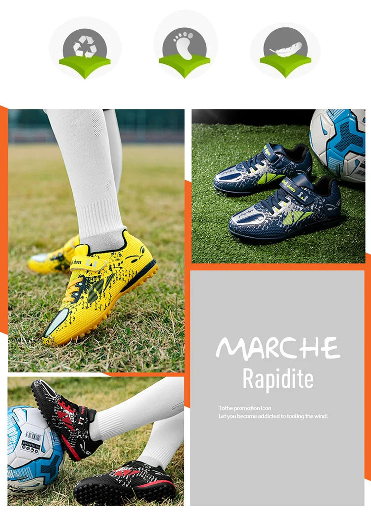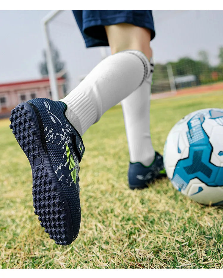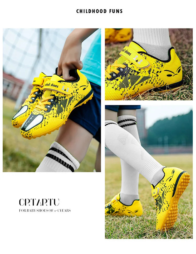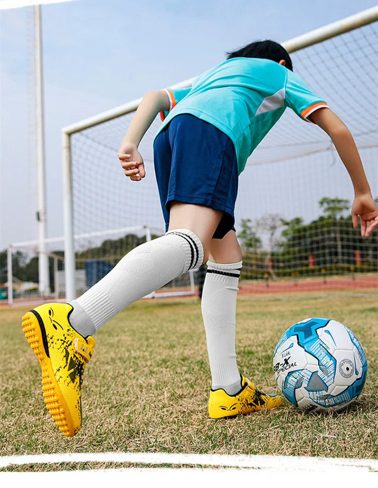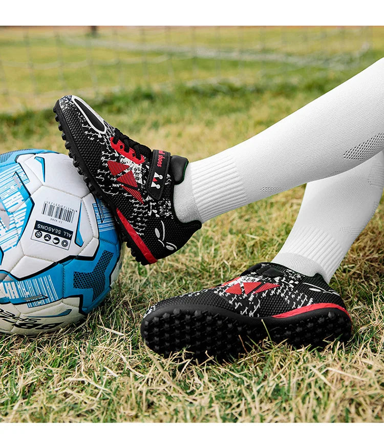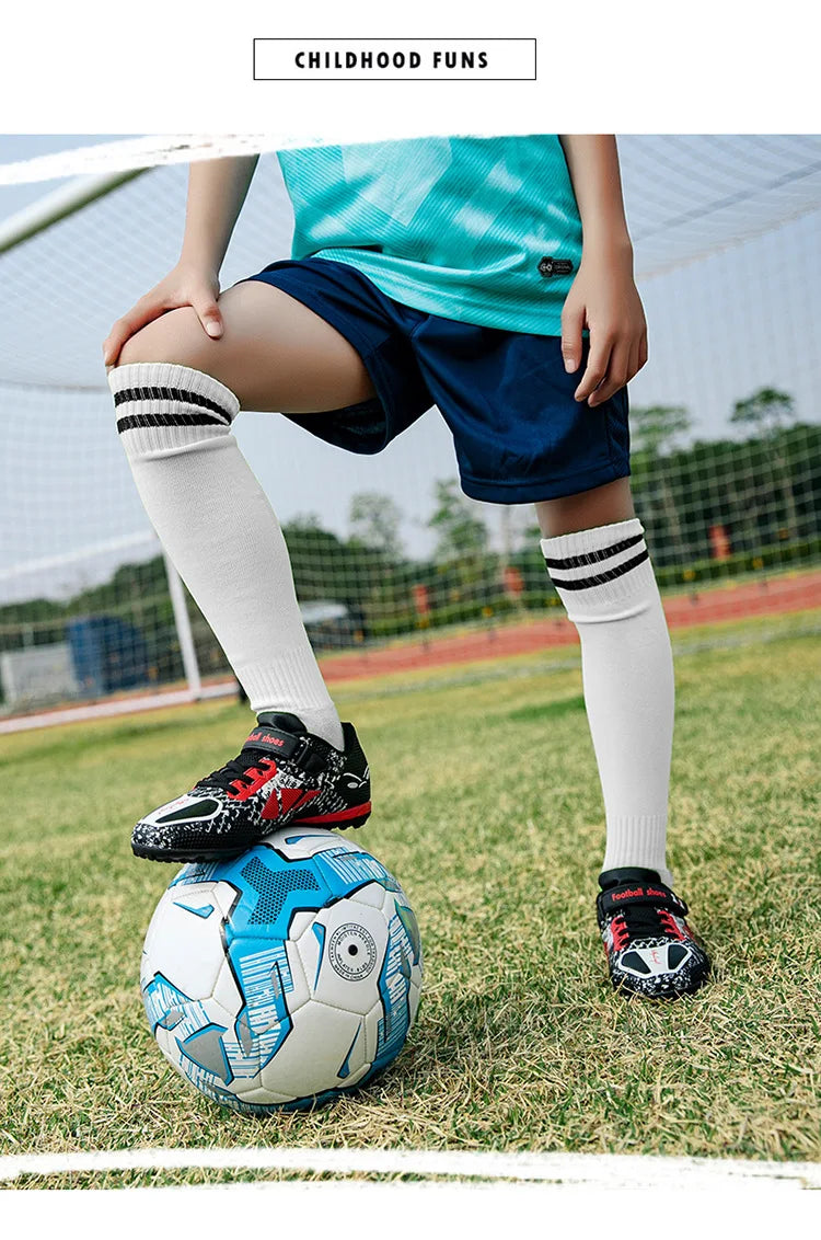 Children Football Shoes Soccer Boots Kids Boy Girl Sneakers New Leather High Top Soccer Cleats Training Outdoor Hook & Loop
