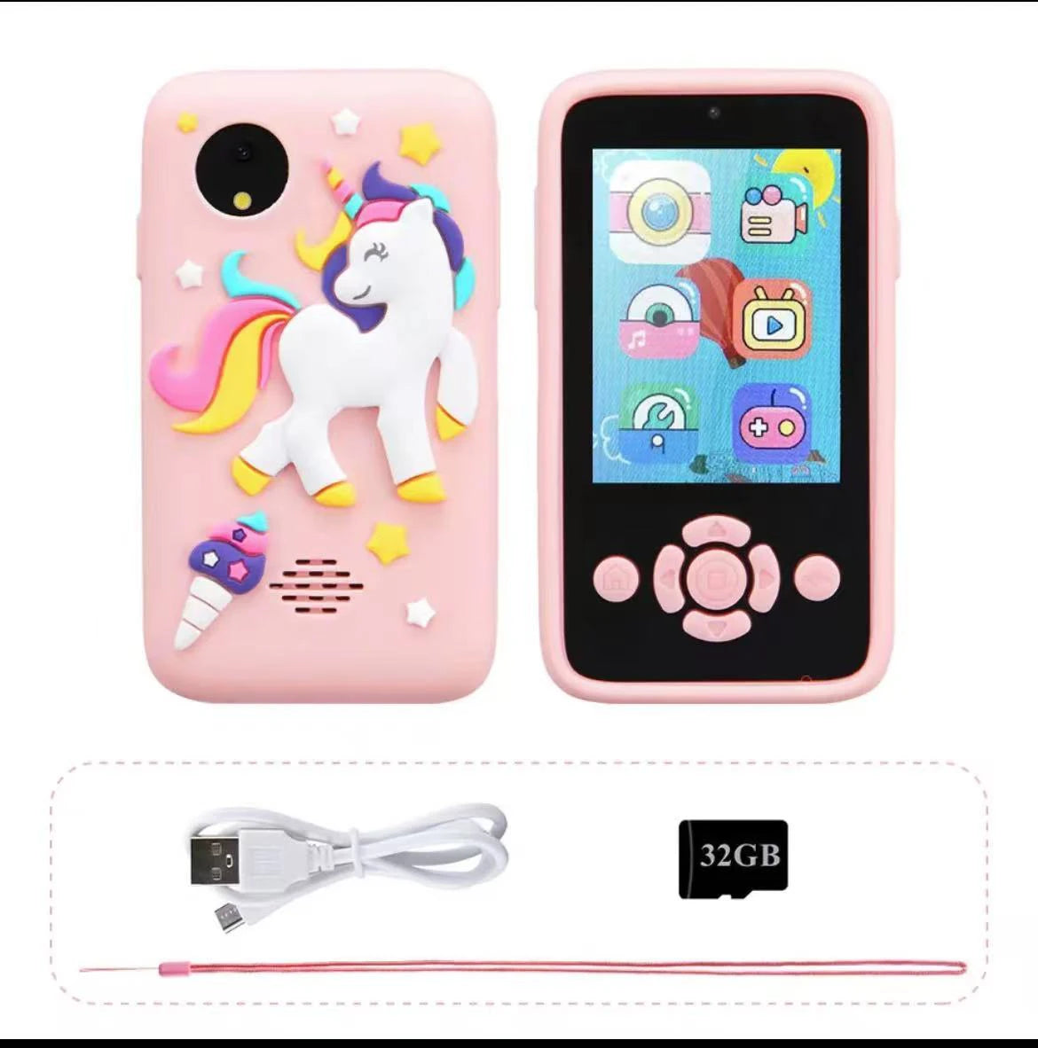Kids Phone for Girls have 6 game modes to choose from.In the process of playing games,Kids can effectively exercise their logical thinking,reaction ability and hand-eye coordination ability. No longer have to worry about children being bored at home.Kids phone can continuously can be used for 2-3 hours after being fully charged! Phones for kids comes with a USB Type-C cable and an 32GB SD card,Can create more storage space for your pictures and videos.
