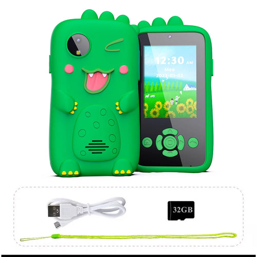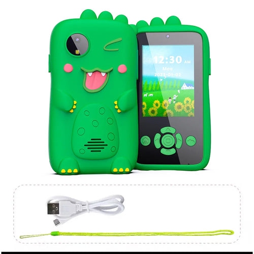 New Mini Phone with Dinosaur Protective Case,Toy Phone with Puzzle Games,Kids Smartwatch Phone MP3 Music Player Video Recorder