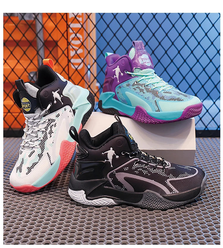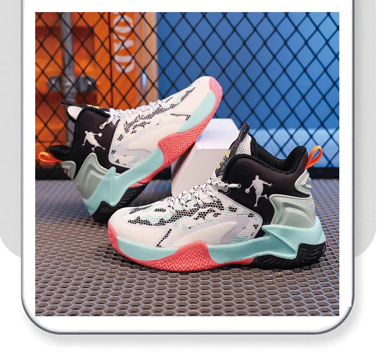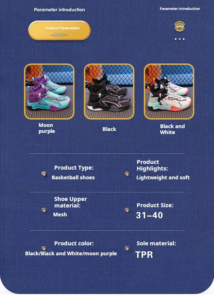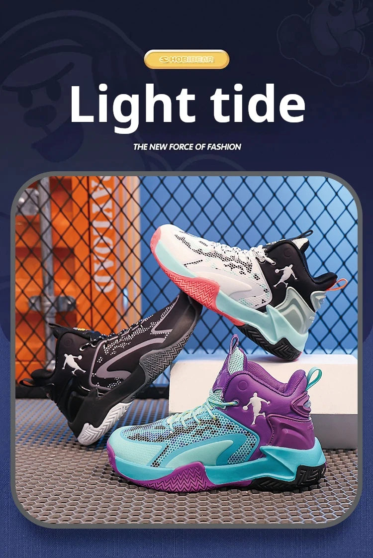 Childrens Basketball Shoes Big Kid Non Slip High-top Sport Training Sneakers Lightweight Outdoor Basketball Boots for Boy Yout