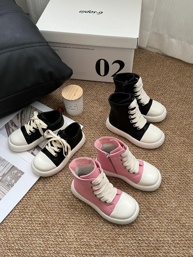 Children's Boots Autumn and Winter New Korean Style Short Boots for Boys and Girls Waterproof Mid-Calf Baby Girl Leather Boots Fashionable Brand Shoes