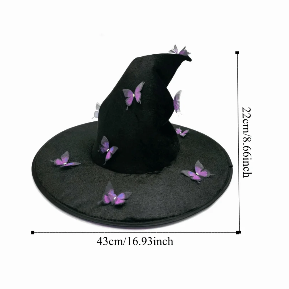 Colorful Halloween Witch Hat Velvet Party Props Butterfly Wizard Cap Cosplay Accessories Halloween Black Cap Children