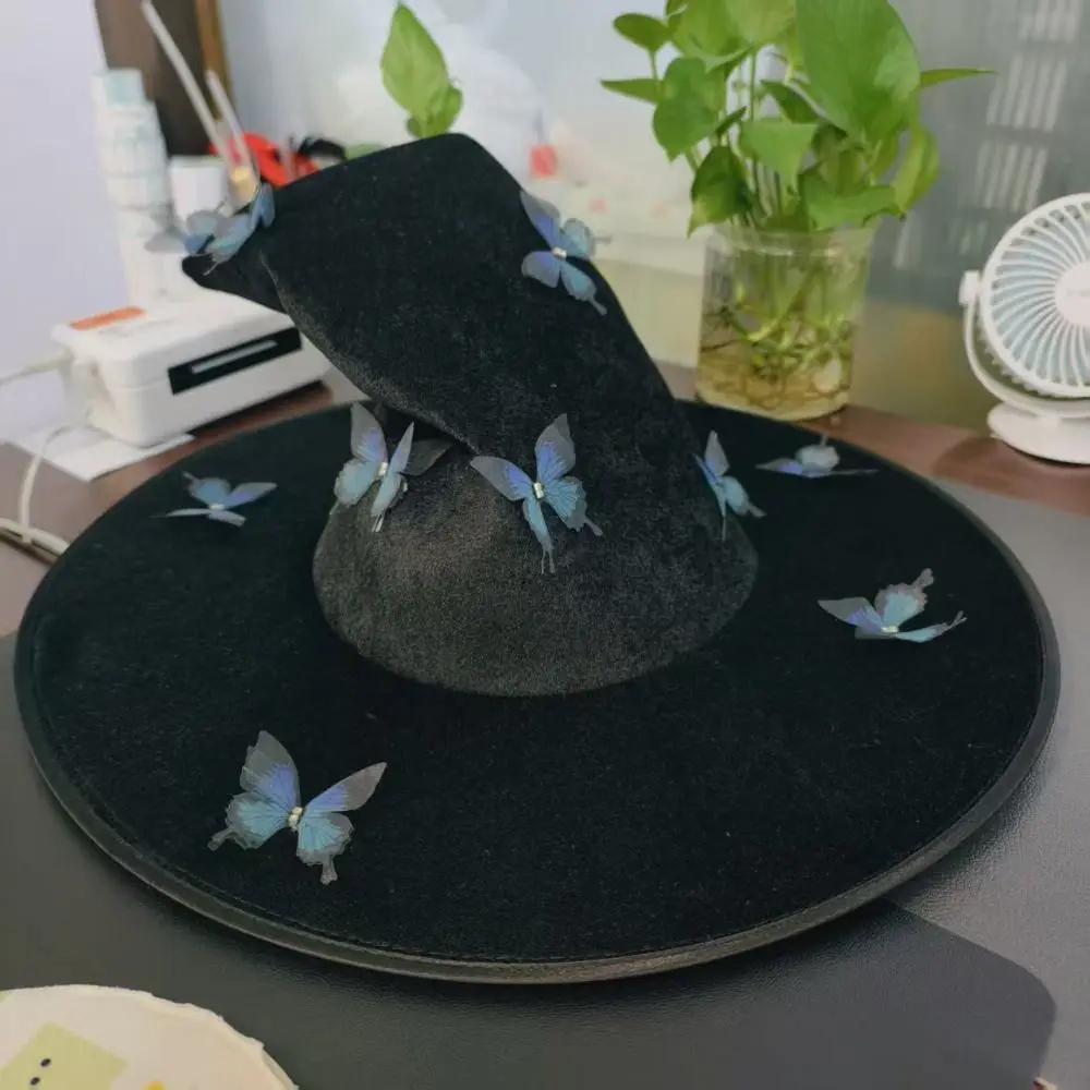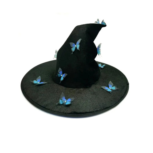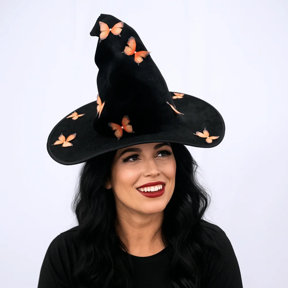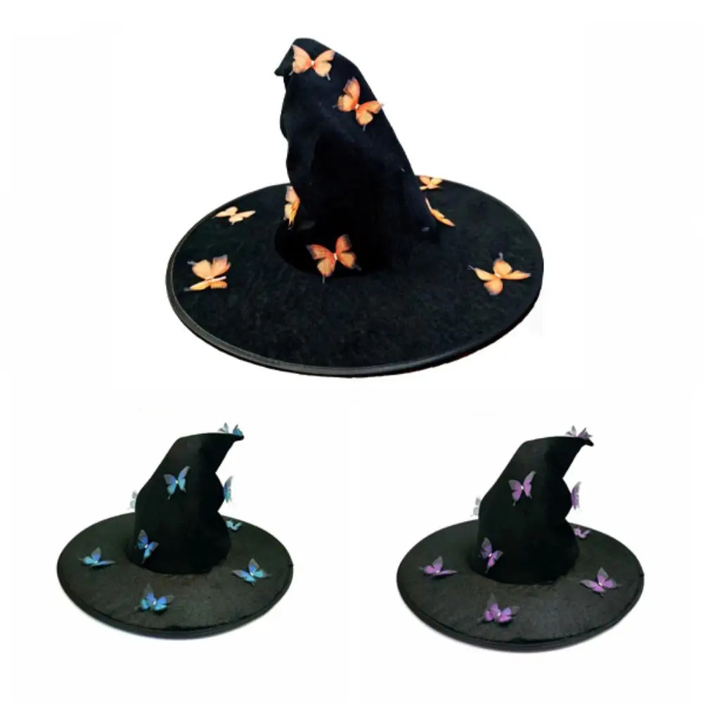 Colorful Halloween Witch Hat Velvet Party Props Butterfly Wizard Cap Cosplay Accessories Halloween Black Cap Dress Up Headgear