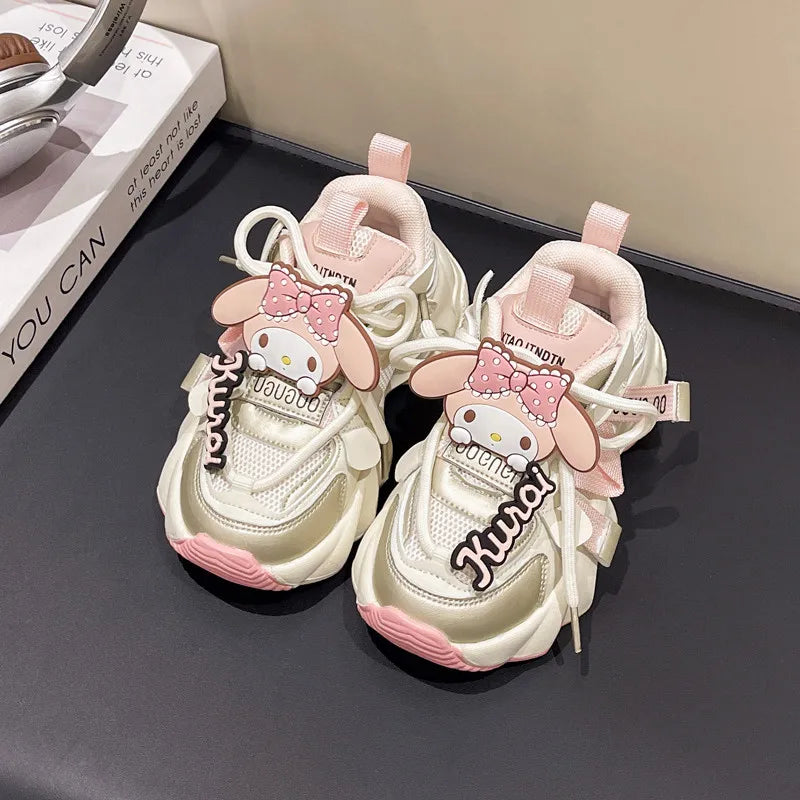 Cute Girl's Sneakers Cartoon Kuromi Melody Children Tennis Shoes Fashion Versatile Causal Classic Kids School Basketball Shoes