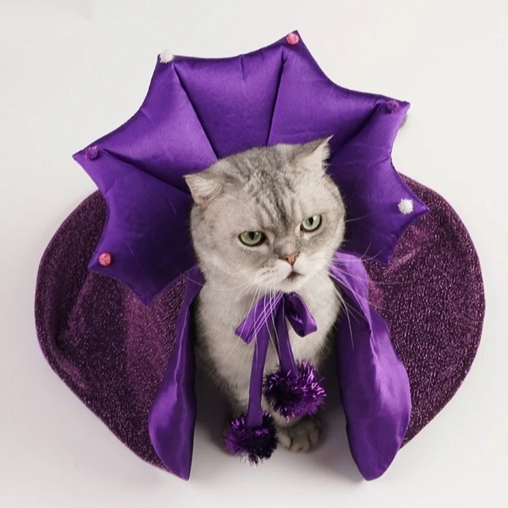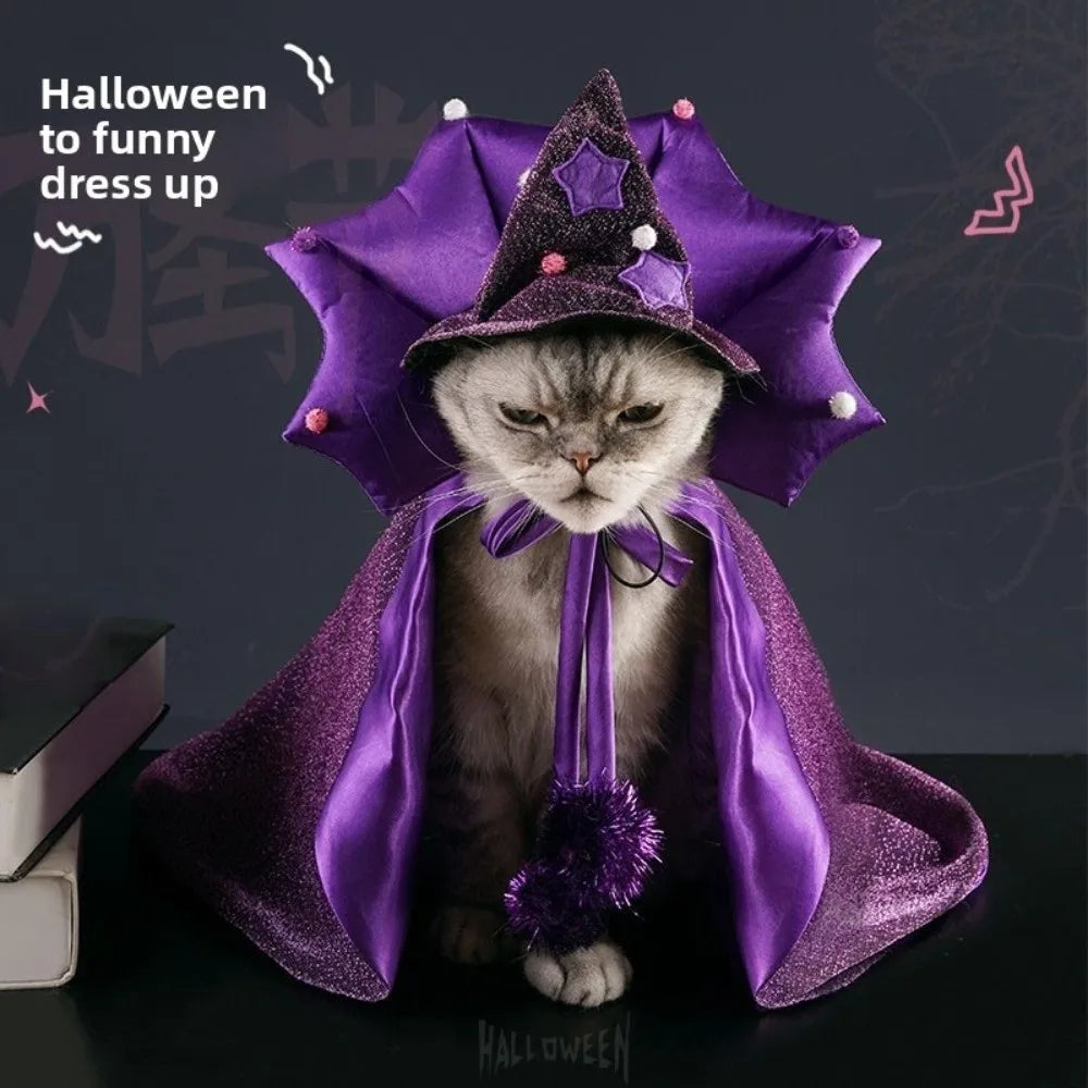Cute Star Pet Witch Cloak Cloth Purple Halloween Pet Cloak Witch Hat Soft Dog Witch Costume Cat