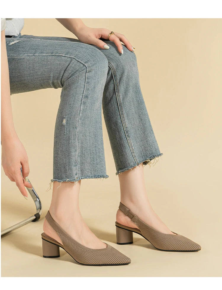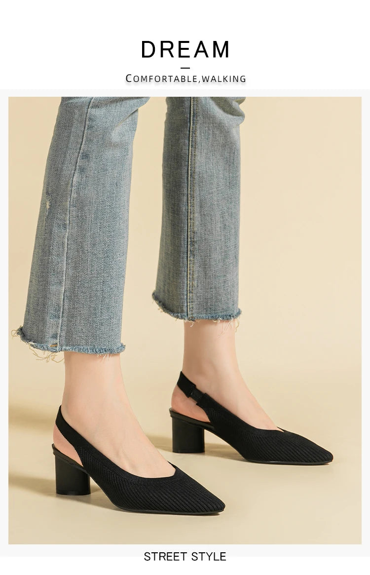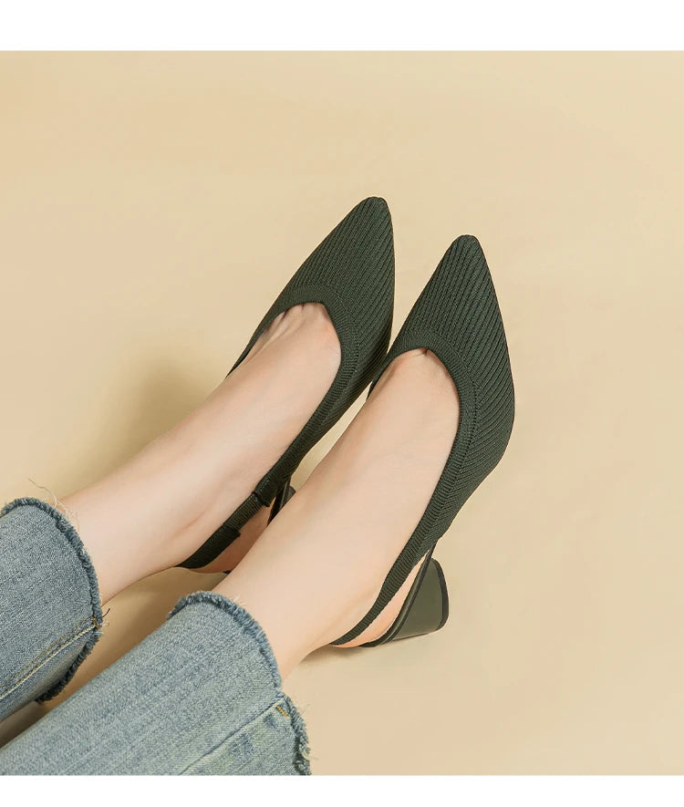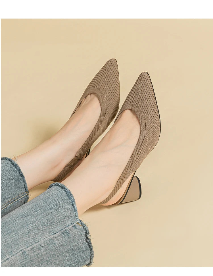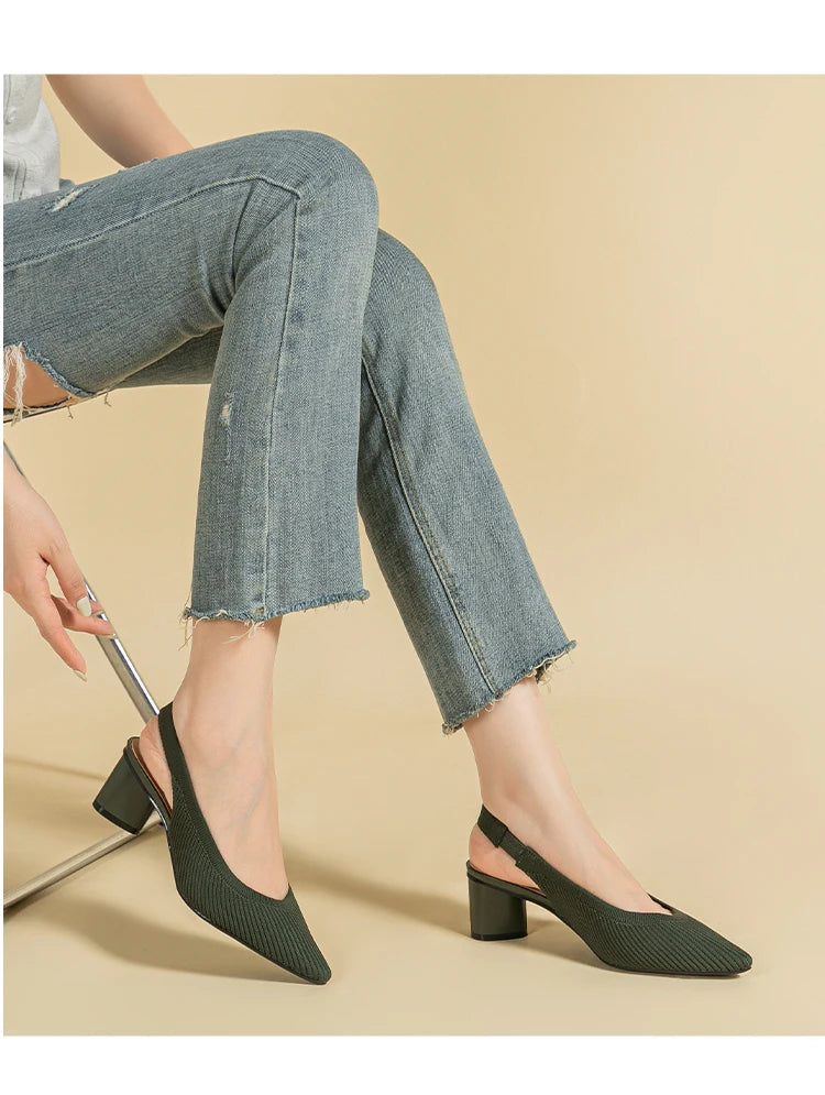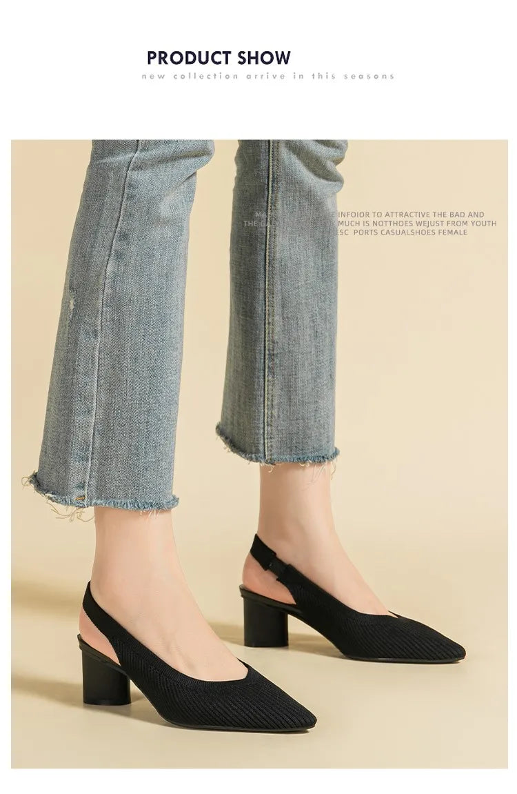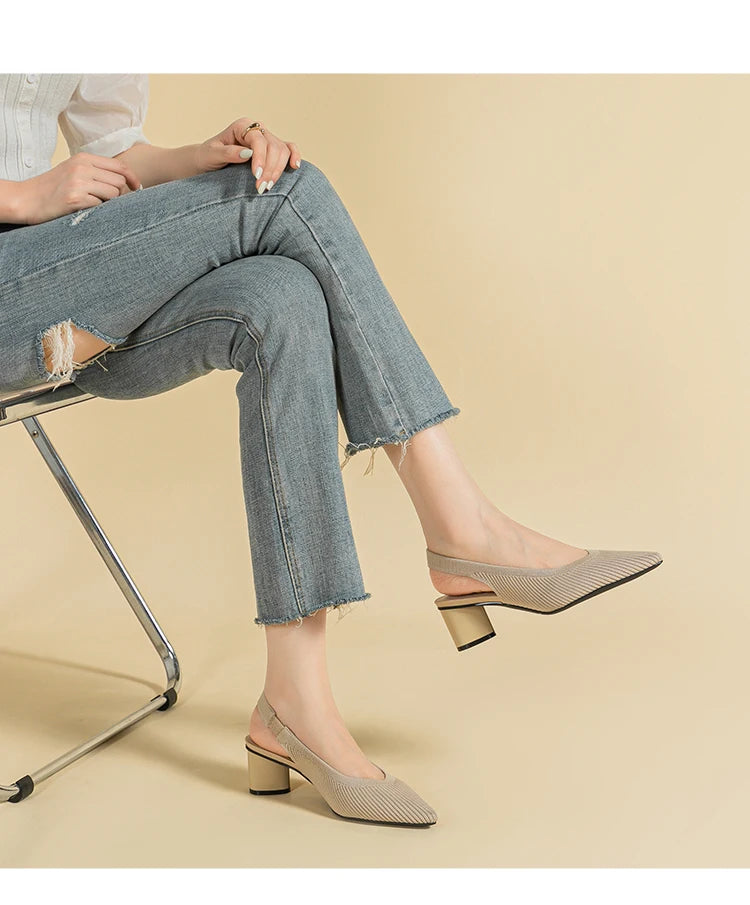 DIMANYU Women Dress Shoes Knitted Solid Color Toe Back Trip Fashion Sandals Women Pointed Toe Shallow Sidespace Women Sandals