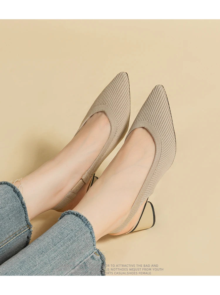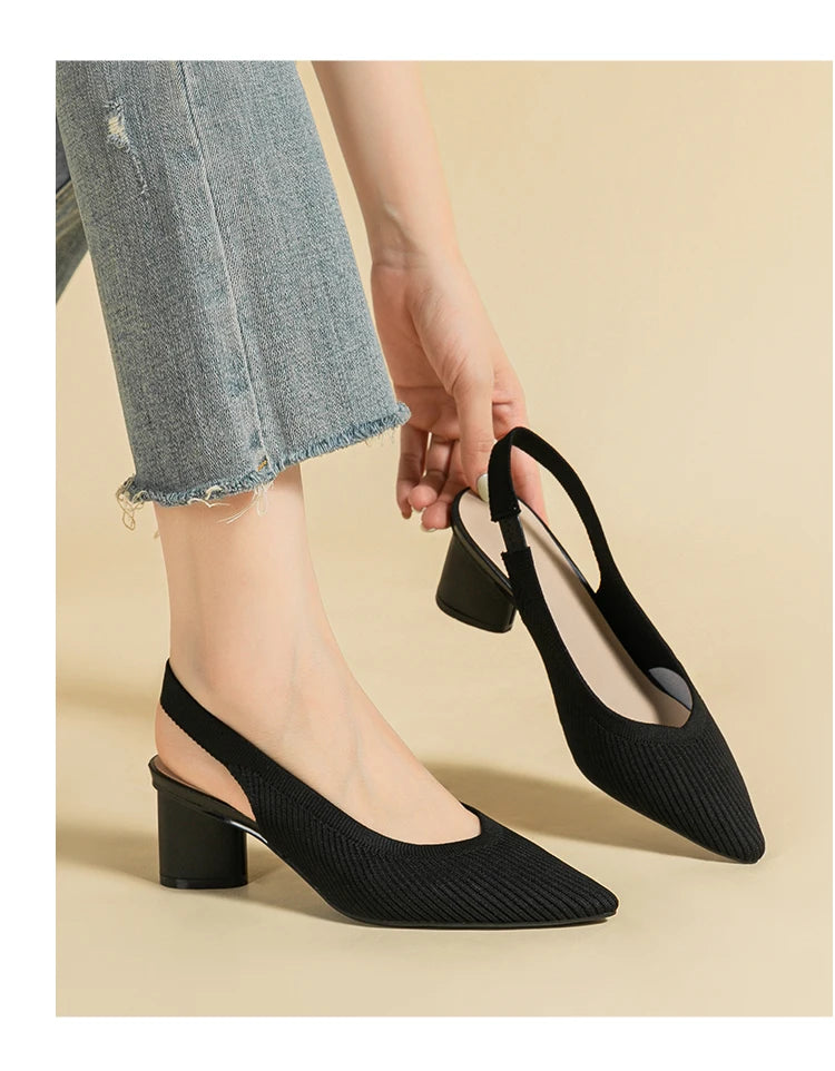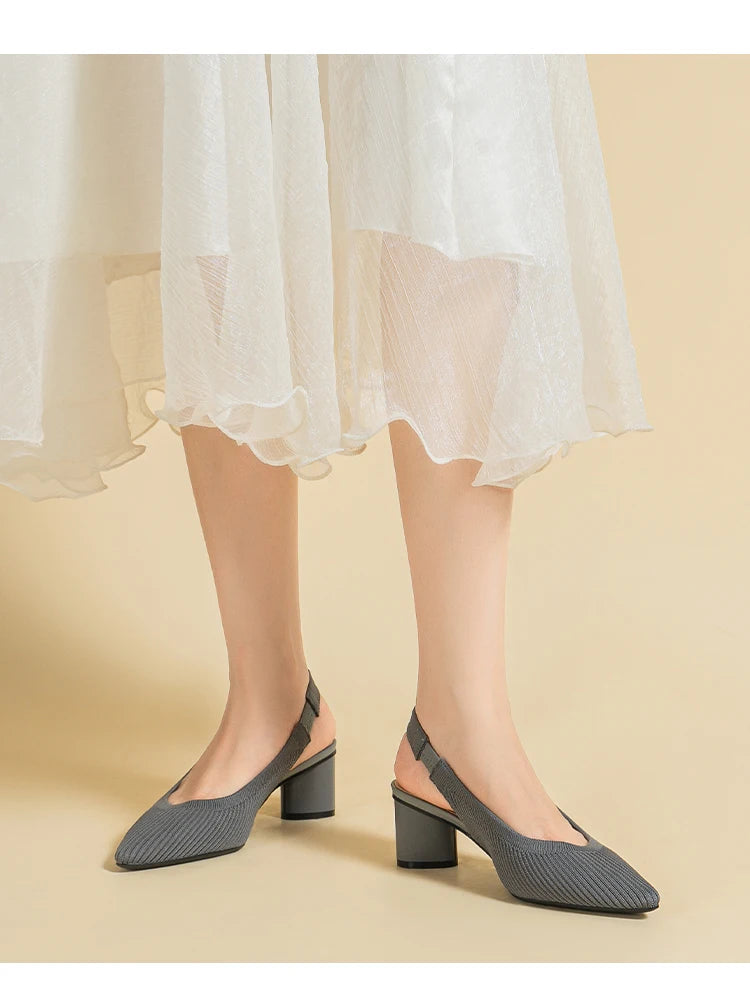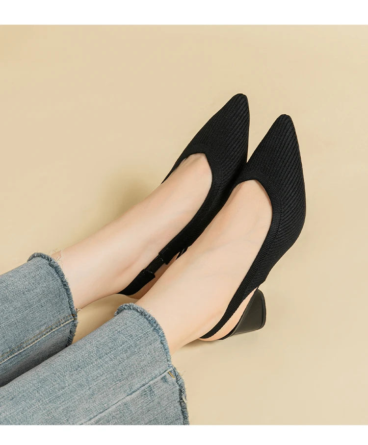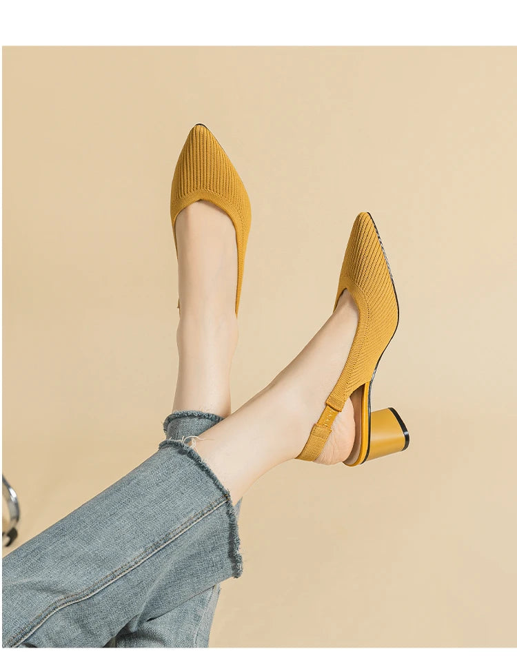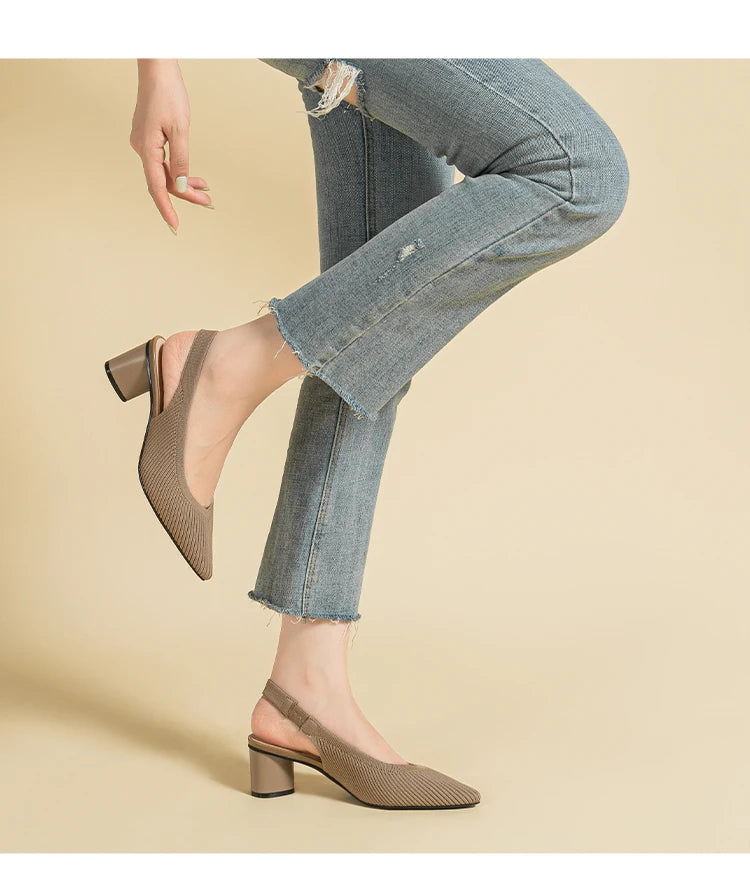 DIMANYU Women Dress Shoes Knitted Solid Color Toe Back Trip Fashion Sandals Women Pointed Toe Shallow Sidespace Women Sandals