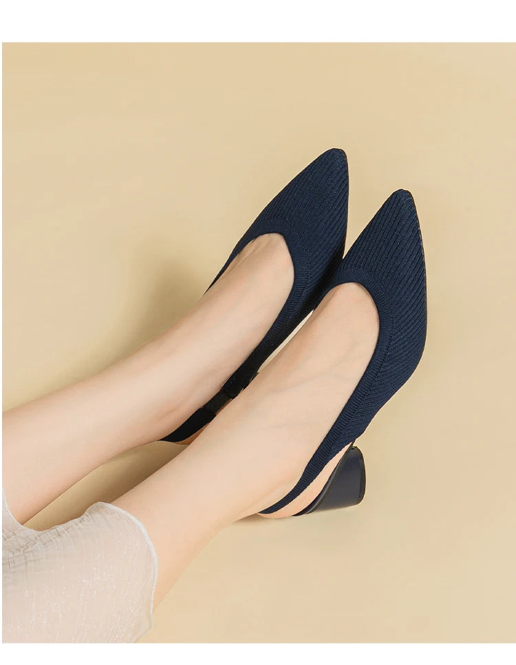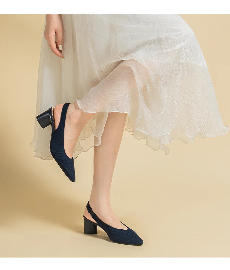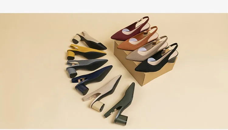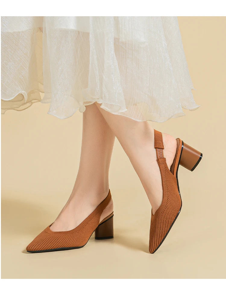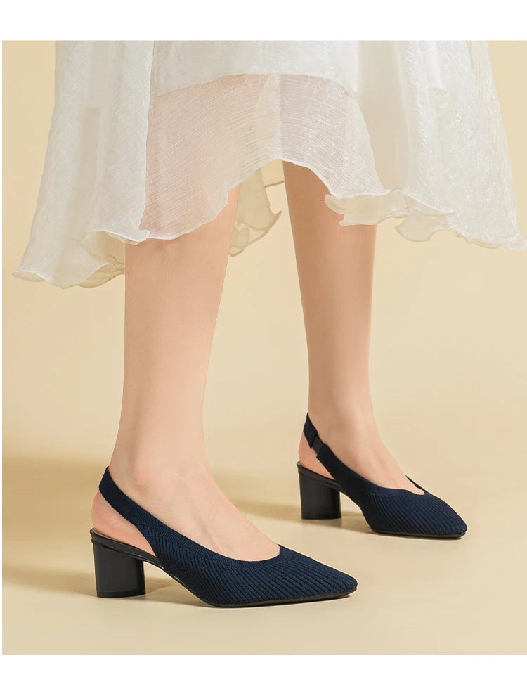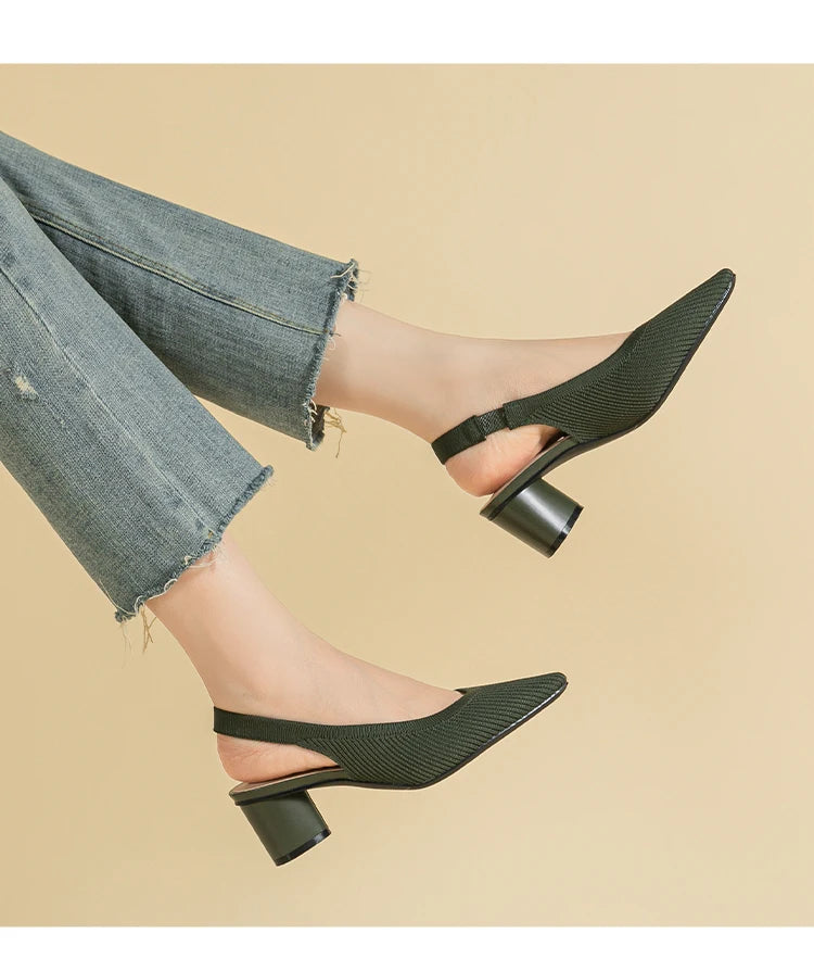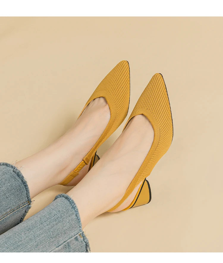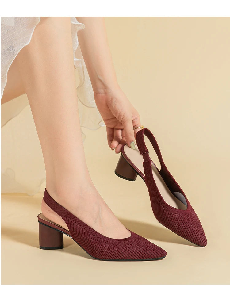 DIMANYU Women Dress Shoes Knitted Solid Color Toe Back Trip Fashion Sandals Women Pointed Toe Shallow Sidespace Women Sandals
