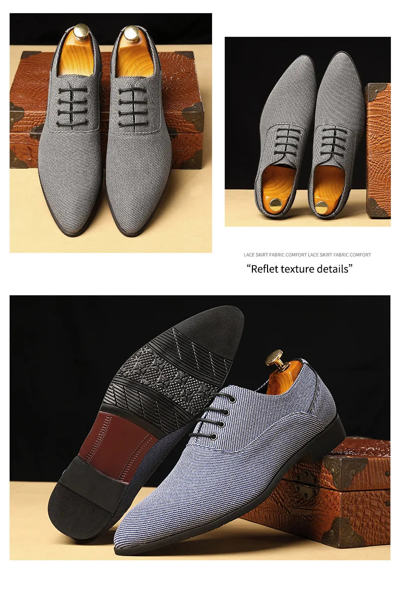 Dress Shoes Men Business Pointed Toe Canvas Dress Shoes Men gray Lace Up Oxfords Formal Man Shoes Casual Driving Shoes Loafers