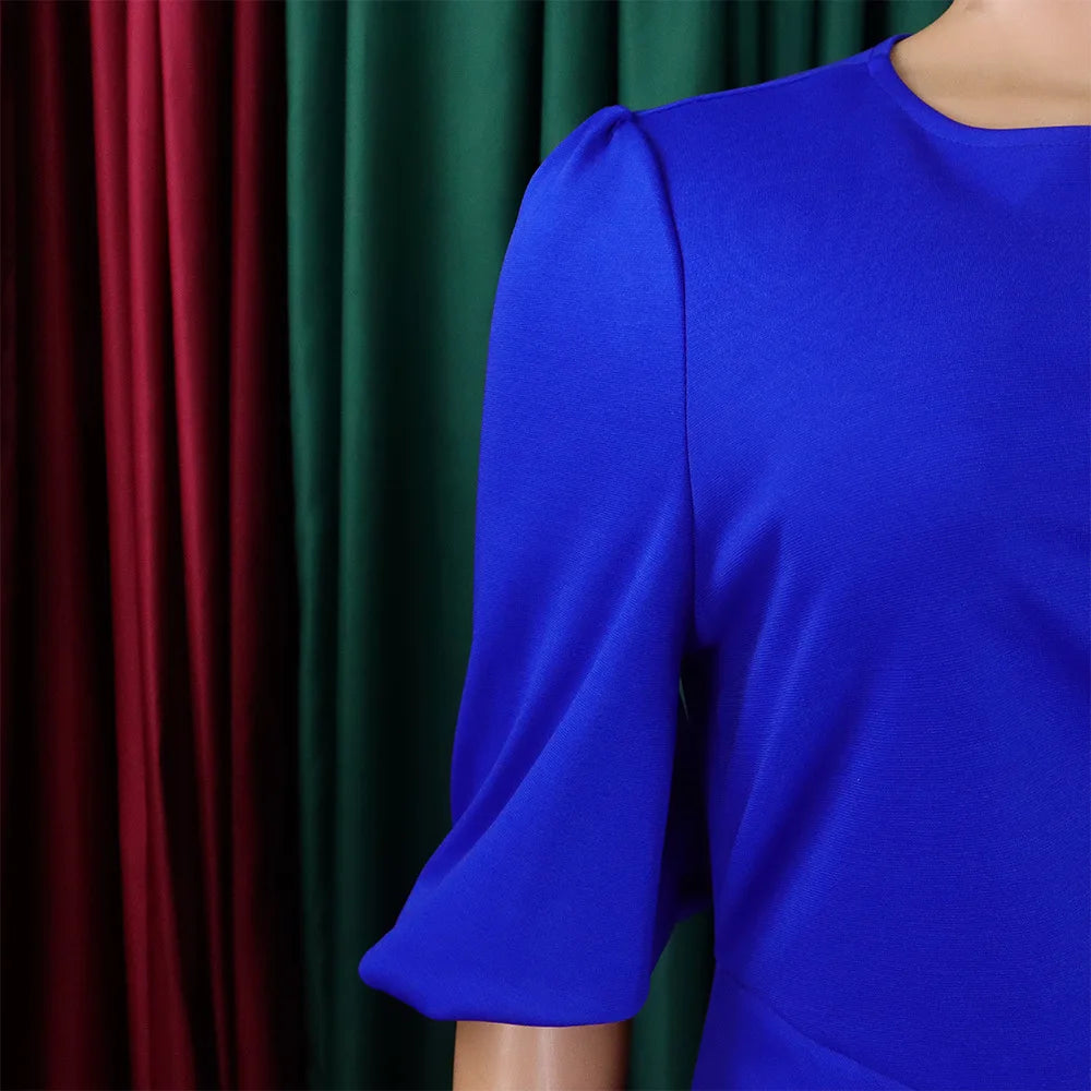 FairyShely Solid Short Sleeve Plus Size Long Dress Women O Neck Large Big Dresses Lady Summer Party Tight Curvy Dress