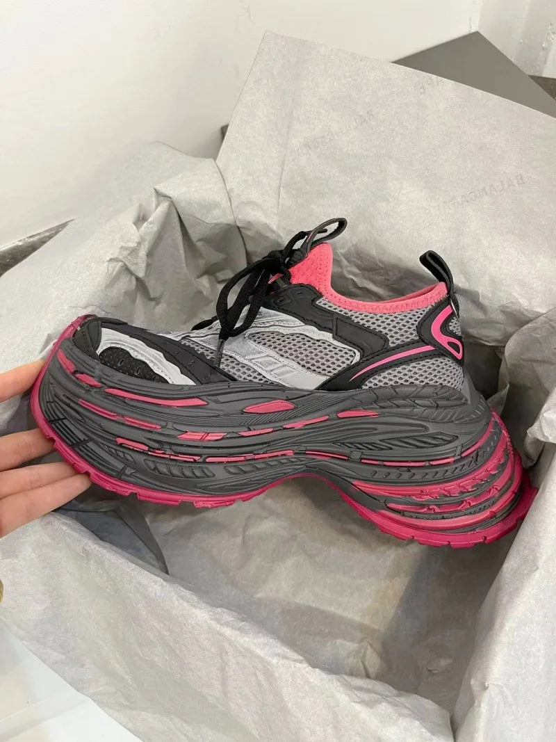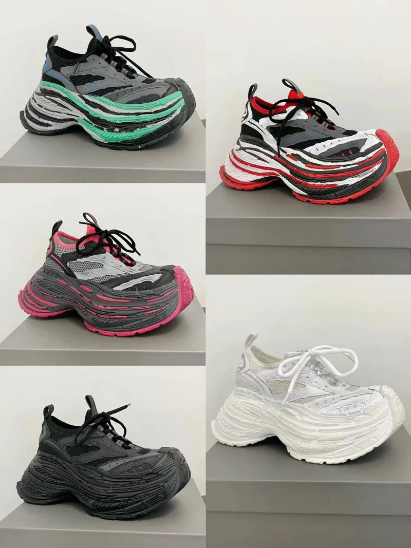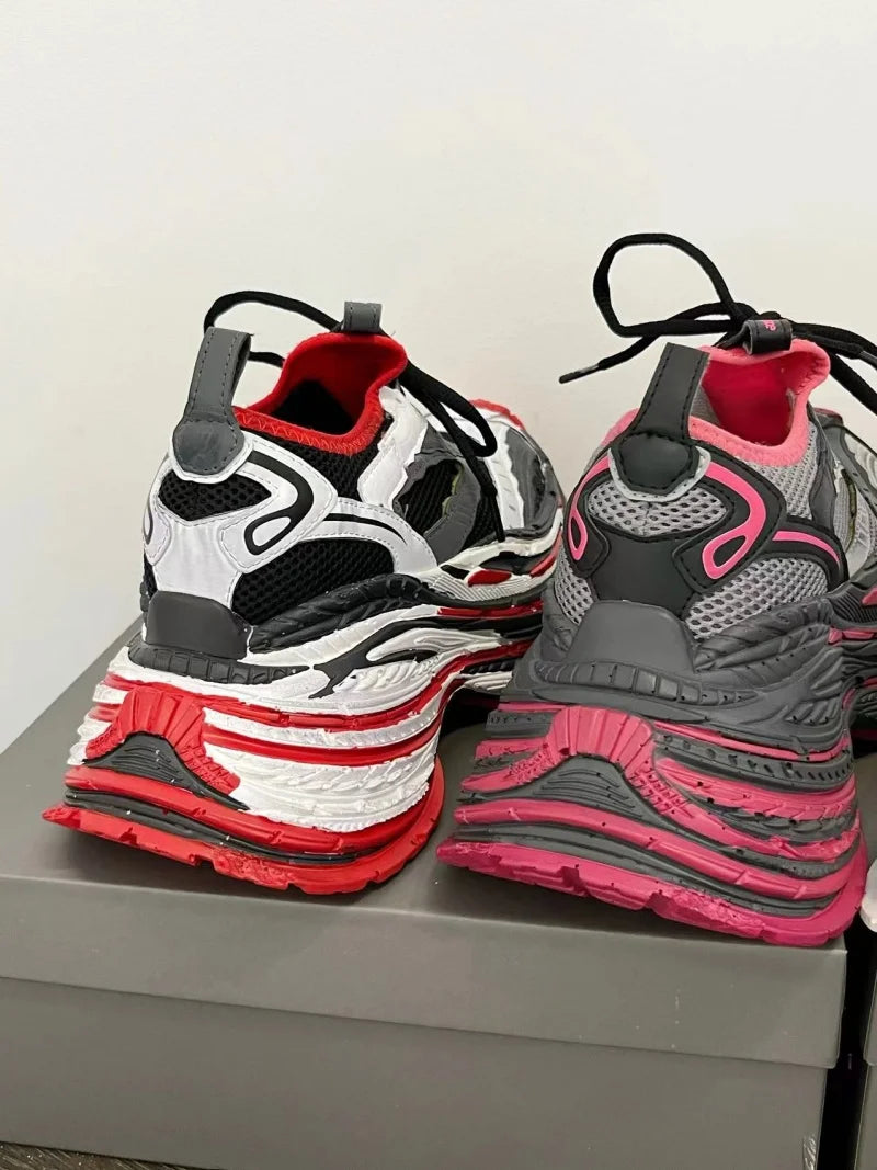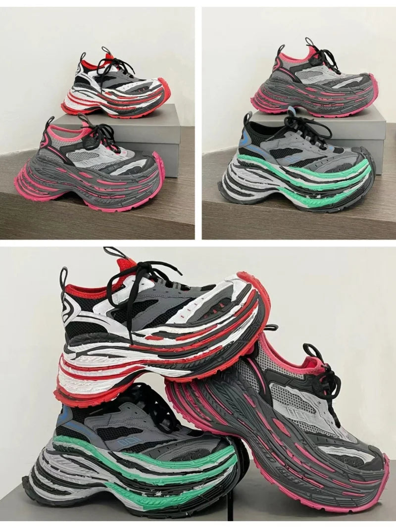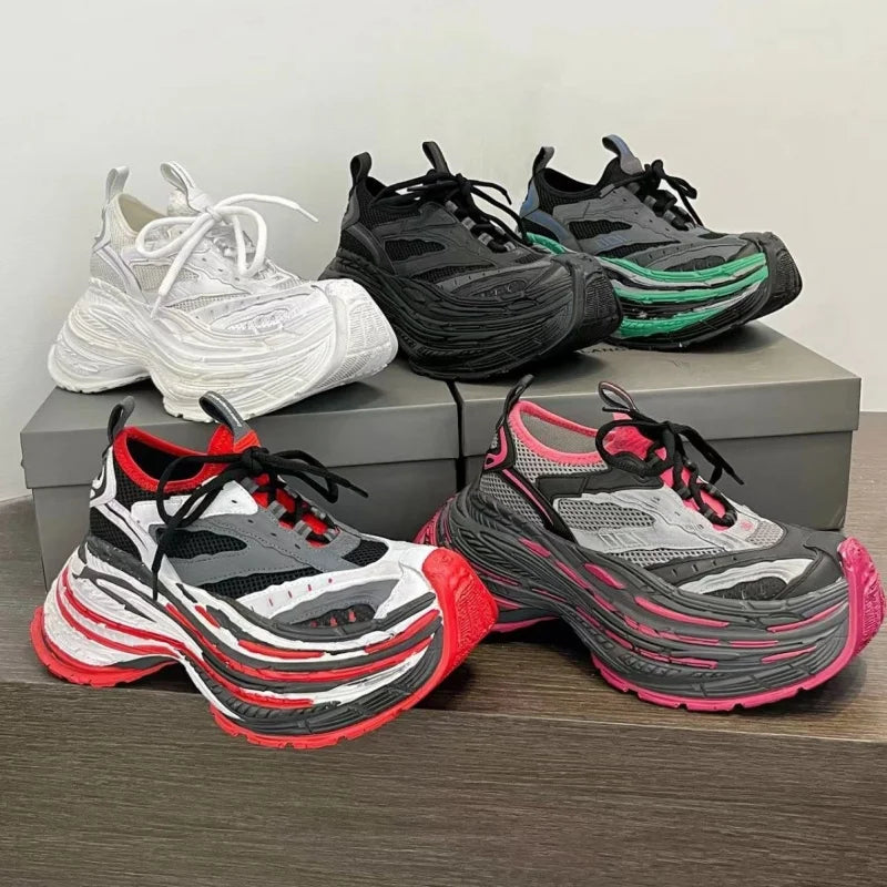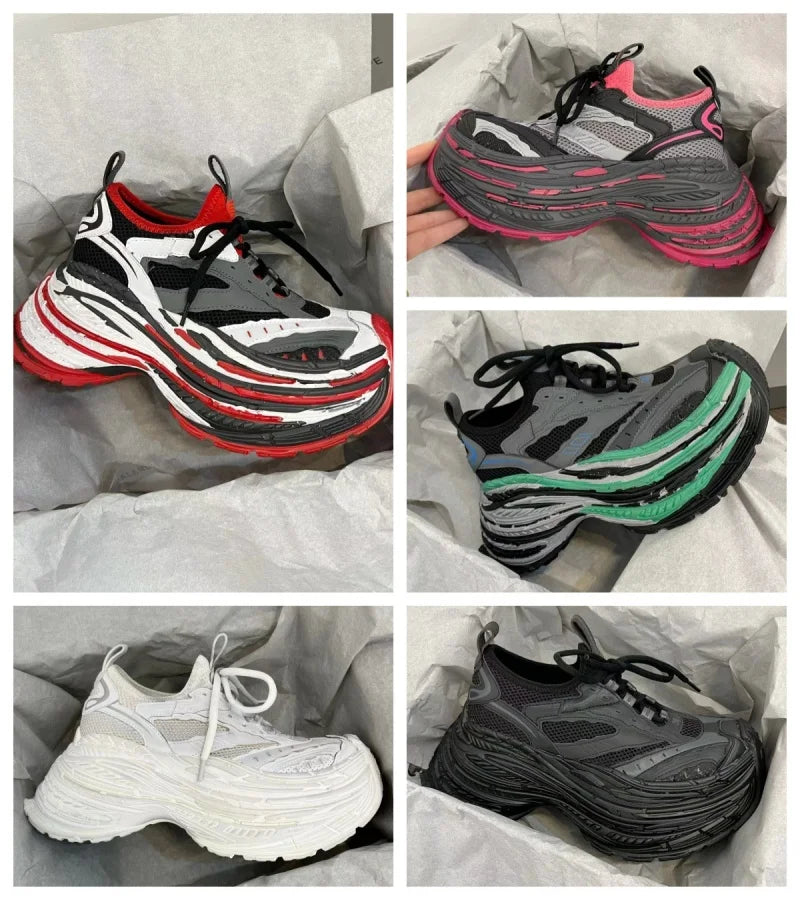 Fashion Designer Shoes Sneakers for Women and Men Mixed Colors Mesh Air Thick Sole Couple Chunky Sneakers Height-increasing