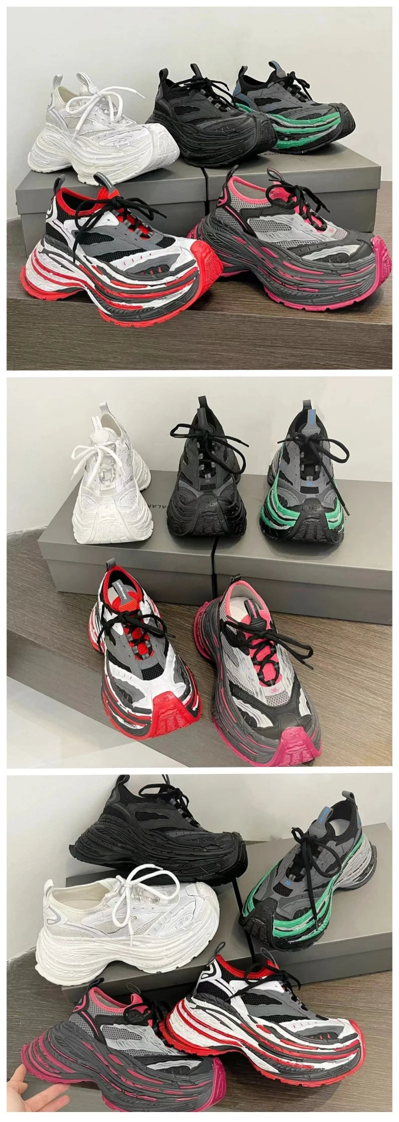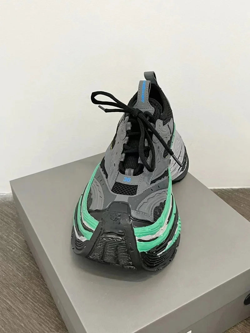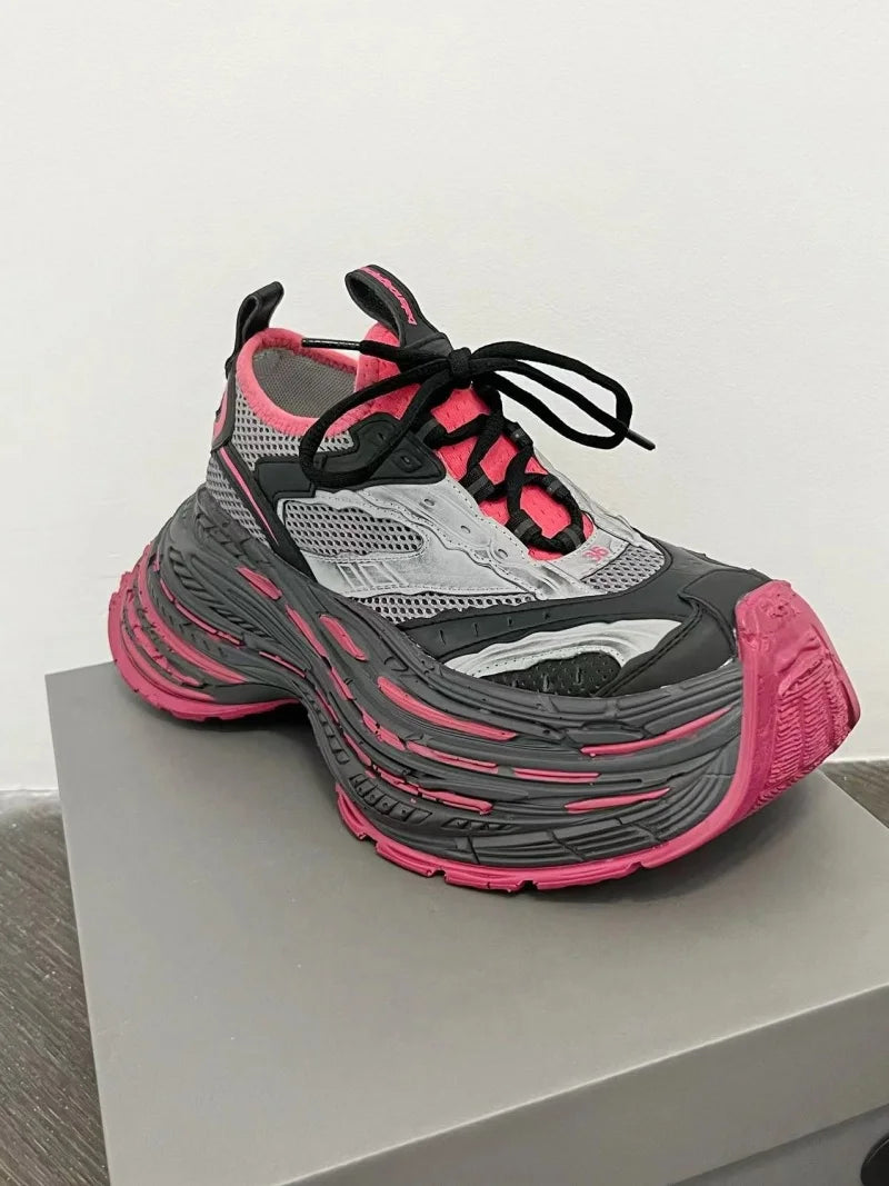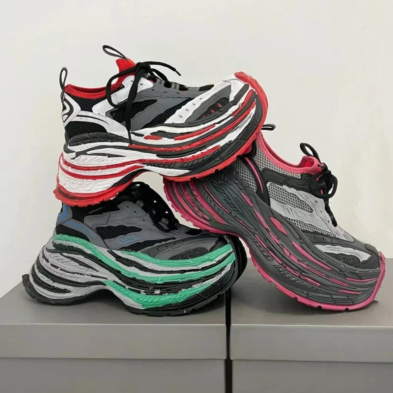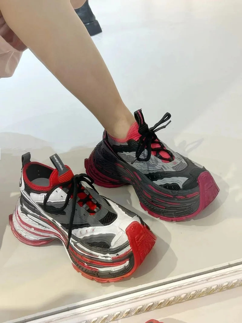 Fashion Designer Shoes Sneakers for Women and Men Mixed Colors Mesh Air Thick Sole Couple Chunky Sneakers Height-increasing