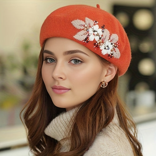 Flower Embroidery Elegant Beret Hat Classic Casual Berets Cap Painter Hats For Women